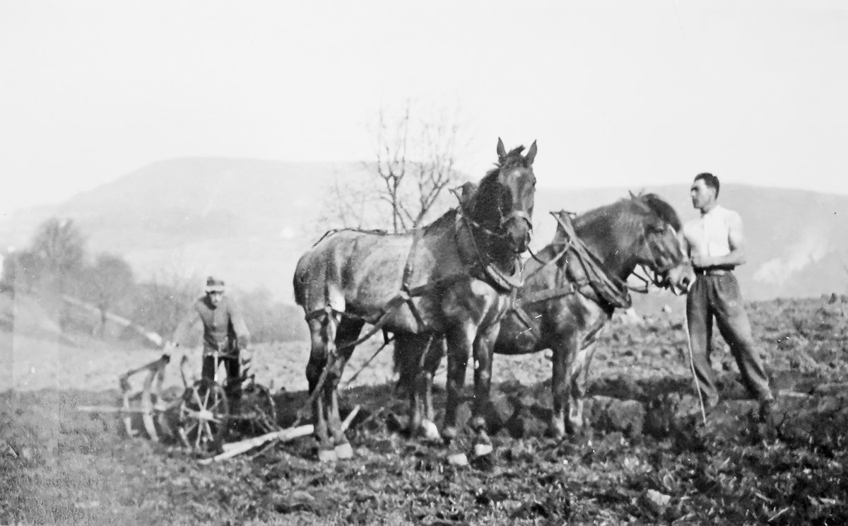 Empfangen wurde ich nicht vom Bauern, sondern von meinem soeben der Schule entlassenen Vorgänger, der seinen letzten Arbeitstag hatte. Er war gerade dabei, die Pferde einzuspannen und gab mir etwas mürrisch Antwort, wollte sich wohl wichtig machen vor mir. «Dr Puur isch nid da, chasch grad mit mier cho Mischt egge», befahl er und meinte, ich könne hinten auf den Wagen steigen. Und ab ging es dem Langenwil zu. Ich hatte keine Ahnung von dieser Arbeit und schaute mal vorsichtig, was da so vor sich gehen sollte. «Chasch d Ross ha, ig heiche de Chötieichte a», meinte er. Gesagt getan, marschierten wir dem Feld zu. Und dann sollte ich auch schon die Pferde führen, dabei hatte ich doch noch nie ein Pferd geführt. So lag natürlich bereits nach der ersten Wende die Eichte auf dem Rücken. «Du musst nicht so eng wenden», tönte es prompt von hinten. Ja ist doch klar, hätte ich doch wissen müssen, aber von wo auch? So ging es weiter und die Egge überschlug sich noch ein paarmal und jedes Mal gab es eine Reklamation von hinten.