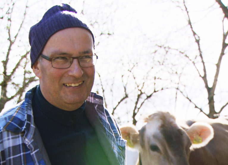 Man sieht Ritter, wie er der Mutter Clara in der Küche Holz nachlegt, wie er seine Hochstämmer schneidet und den Rindern die Ausraumete rausputzt. Natürlich kenne er jedes Rind mit Namen sagt er, das versuche er auch mit seinen Kollegen im Parlament, erklärt er leicht schelmisch.