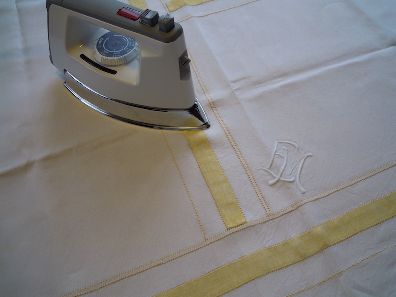 Während ich mit dem Bügeleisen über die Tischdecke gleite, streifen meine Gedanken zurück: Welche Freuden, Sorgen und Ängste stickte wohl meine Grossmutter 1915 hinein, so mitten im ersten Weltkrieg? Sie kannte ihren Mann noch nicht. Ob sie überhaupt einen finden würde im Krieg? Sie heiratete erst 1921 mit 28 Jahren. Die Aussteuer war damals der Stolz jeder Frau und gehörte zum Eigengut. Dutzende von Leintüchern, Anzügen, Chuchitüechli und Tischwäsche gehörten dazu, bestickt mit dem Monogramm. Oft wurden sie in einer grossen Truhe oder einem Schrank aufbewahrt bis zum Hochzeitstag. Je wohlhabender die Familie war, desto umfangreicher und qualitätsmässig besser war die Aussteuer.