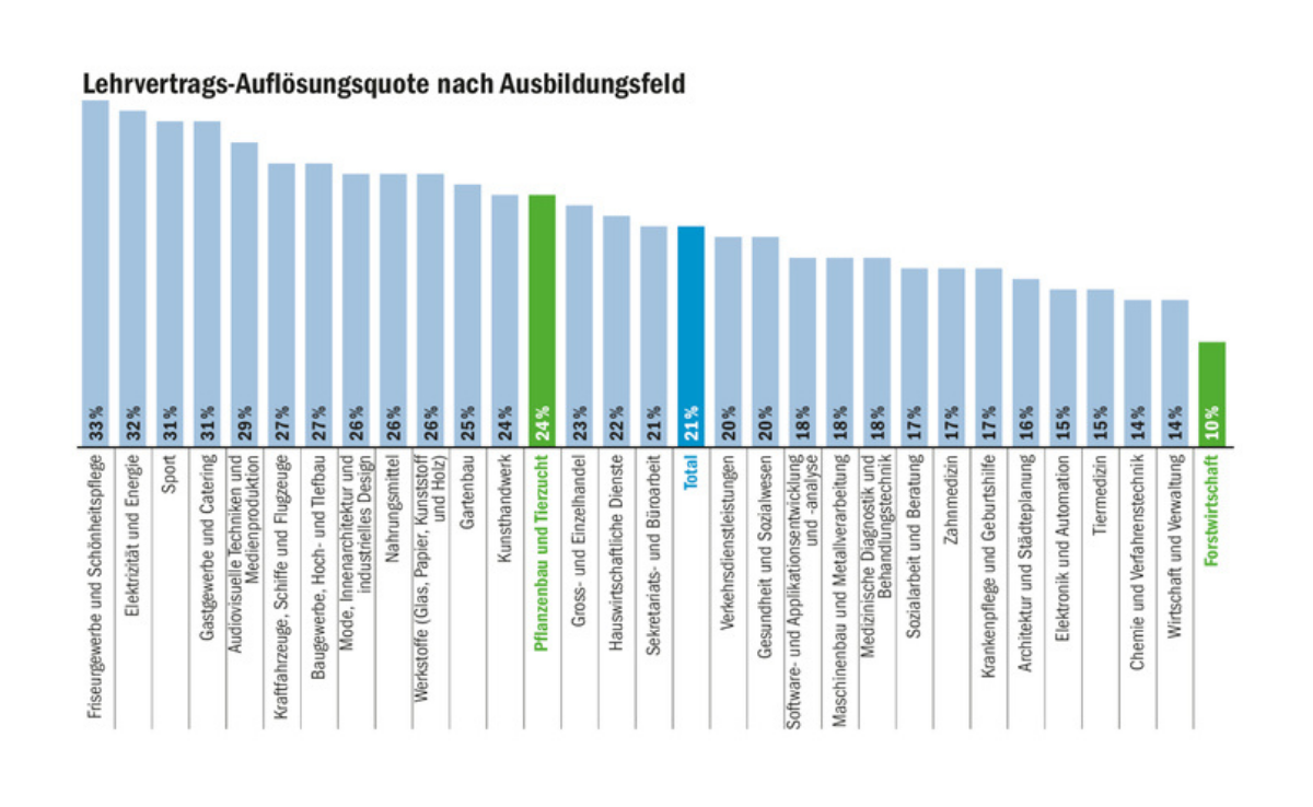 Das Bundesamt für Statistik (BFS) lieferte kürzlich neue Zahlen zum Thema Lehrabbrüche. Im Ausbildungsfeld Pflanzenbau und Viehzucht brachen rund ein Viertel der Lernenden ihre Lehre vorzeitig ab – dieses Feld hat aber die höchste Wiedereinstiegsquote.