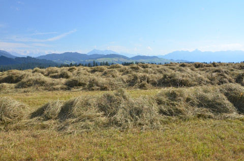 Der Beitrag wird bezahlt, wenn die Jahresration aller auf dem Betrieb gehaltenen raufutterverzehrenden Nutztieren zu mindestens 90 Prozent der Trockensubstanz aus Grundfutter gemäss folgender Auflistung besteht: Dauer- und Kunstwiesen/-weiden (frisch/siliert/getrocknet), Ganzpflanzenmais (frisch/siliert/getrocknet), Mischung aus Spindel und Körnern des Maiskolbens, Maiskolbenschrot und, Maiskolbensilage ohne Lieschblätter (CornCobMix, CCM, nur für Rindviehmast), Getreide-Ganzpflanzensilage, Futterrüben, Zuckerrüben, Zuckerrübenschnitzel (frisch/siliert/getrocknet), Rübenblätter ,Chicorée-Wurzeln, Kartoffeln, Abgang aus Obst- und Gemüseverwertung, Biertreber und verfüttertes Stroh. Zudem muss die Jahresration im Talgebiet zu mindestens 75 Prozent, im Berggebiet zu 85 Prozent aus frischem, siliertem oder getrockneten Wiesen- und Weidefutter bestehen.
