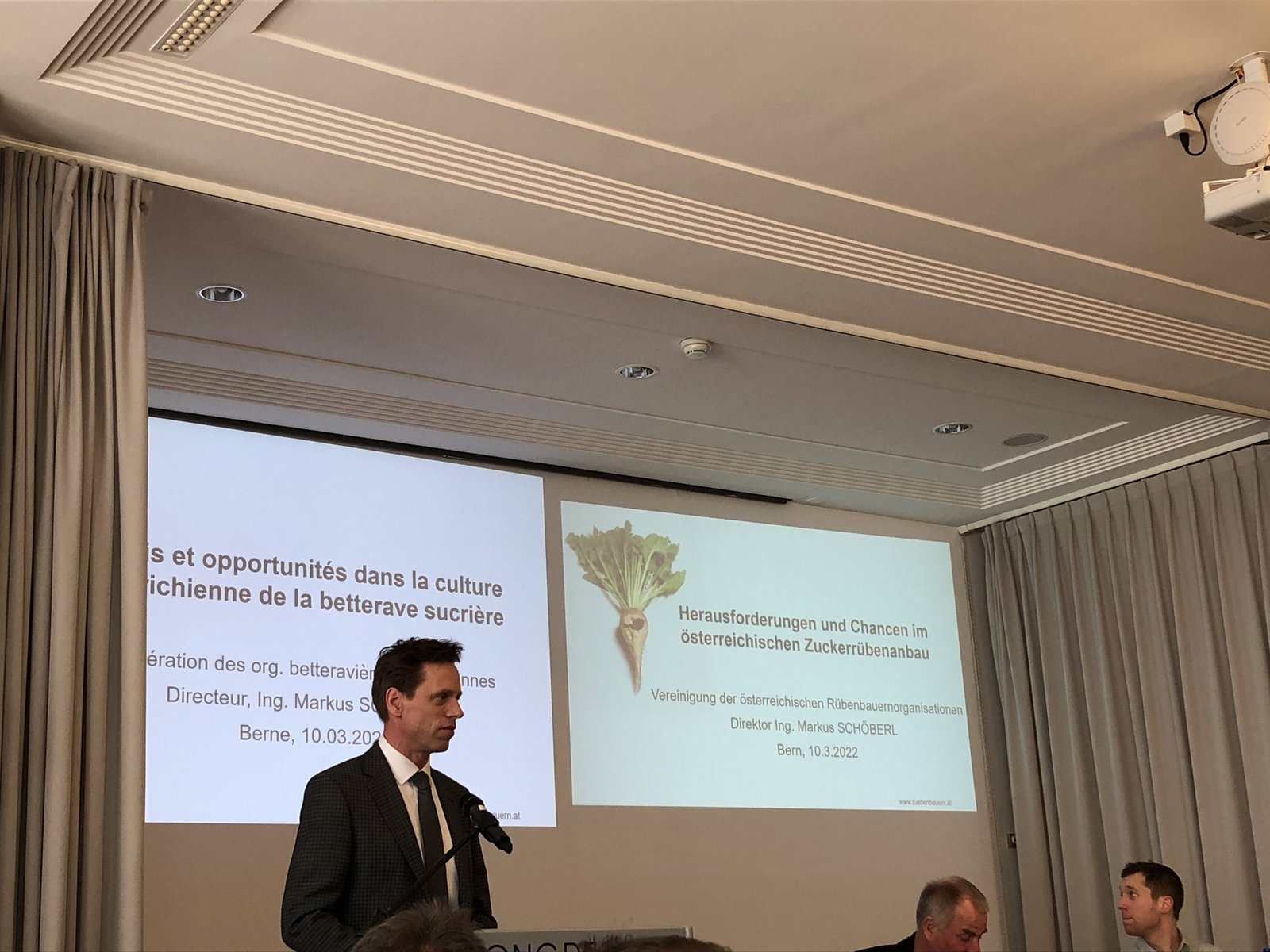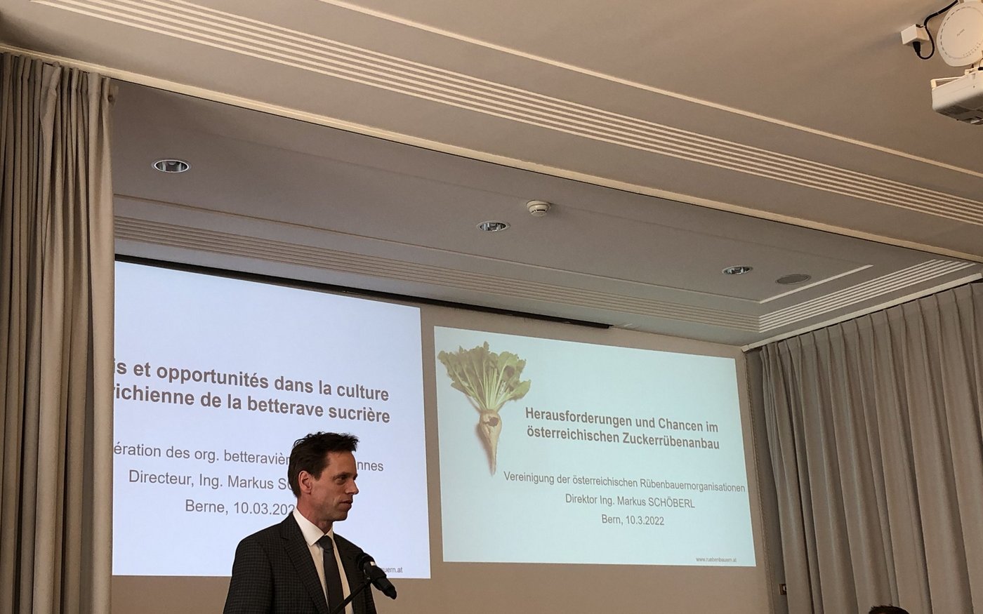 Beim Blick über den Zaun zu unserem österreichischen Nachbarn fallen schnell Gemeinsamkeiten auf. Markus Schöberle, Direktor der österreichischen Rübenbauern war als Gastredner an der DV in Bern dabei und berichete vom österreichischen Zuckerrübenanbau. Flächenmässig zählte Österreich letztes Jahr 38 603 Hektaren. 2016 betrug die Zuckerrübenfläche noch 43 642 Hektaren. «Früher waren Rüben die Einkommensbringer», blickt Schöberle zurück, der schon seit 30 Jahren im Rübenbusiness tätig ist. «Früher fragten uns die Bauern, ob und wie viel Rüben sie anbauen dürften - heute ist es umgekehrt: Auch wir versuchen unermüdlich, die Anbaufläche zu expandieren», so der Direktor der Zuckerrübenpflanzer. Wie die Schweiz betreibt auch Österreich zwei Fabriken, die der Direktor in Zukunft erhalten möchte. Zur Zeit sind jedoch Standortdiskussion im Gang und so habe man einen letzten Anlauf gestartet, um die Flächen auszudehnen, berichtete Schöberle. «Die Branche ist auf die politische Hilfe angewiesen», betonte Schöberle.