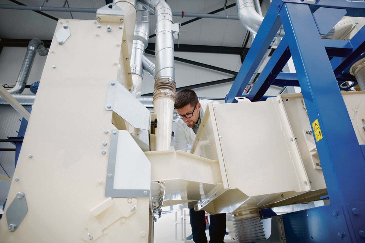 Die Suche nach einer geeigneten Schälanlage blieb hierzulande ergebnislos; eine Verarbeitung im Ausland kam für die Jungunternehmer indes nicht infrage. «Die beste Lösung war folglich der Bau einer eigenen Schälanlage, die optimal auf die sensiblen Hanfnüsse abgestimmt ist», sind sich die Alpenpioniere bei der Inbetriebnahme am 24. Juni einig. Die Anlage haben sie gemeinsam mit deutschen und tschechischen Ingenieuren entwickelt und selber zusammengebaut; sie bildet nun das Herzstück der neuen «Fabrigg» im Industriequartier von Zizers GR. In einem mehrstufigen Verfahren trennt sie die Körner zuerst von Fremdkörpern, danach werden die Nüsse mit einem Prallschäler schonend geschält. Pro Tag lässt sich so rund eine Tonne Nüsse schälen, die anschliessend zu verschiedenen Produkten weiterverarbeitet werden. Der neueste Wurf von Alpen Pionier ist ein Proteinpulver für Sportler, das durch moderne Siebtechniken gewonnen wird. Mit der Anlage kann das Unternehmen künftig auch für Dritte schälen und Getreide und Ölsaaten putzen.