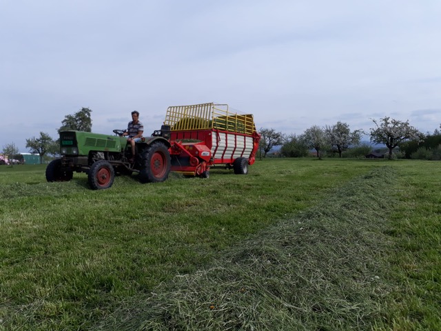 Heute führten wir unser erstes Heu ein. Dadurch entstand das Bild mit unserem Fendt 2 DE. Er war seit seiner Anschaffung 1968 nebst dem zehn Jahre älteren Dieselross der «Grosse» der Traktoren während 19 Jahren.