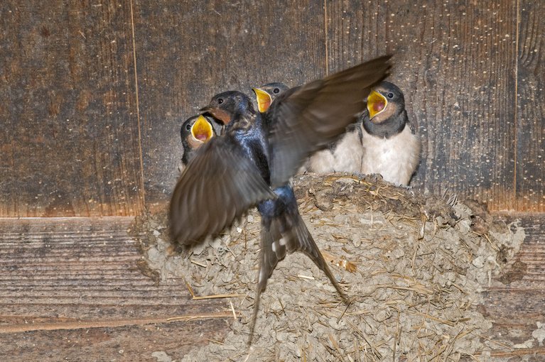 Oft fehlen geeignete Nistplätze. Rauch- und Mehlschwalben „kleben“ ihre Nester mit natürlichem Schlamm als Mörtel an eine Wand oder an einen Deckenbalken. In neuen Ställen sind die Dachträger, die Leimbinder, oft gehobelt, so dass das Nest keinen Halt daran findet, oder Deckenbalken, die den Schwalbennestern Schutz geben, fehlen ganz. Hier ist die Hilfe des Landwirtes gefragt. Er kann zum Beispiel eine Leiste an die Wand oder an einen Balken nageln, so dass diese als Unterlage für das Nest dient. Auch Kunstnester am richtigen Ort nehmen Schwalben an. Bei der Platzierung ist darauf zu achten, dass Katzen und Marder sie nicht erreichen. In modernen Freilaufställen sind zugluftgeschützte Plätze wichtig.