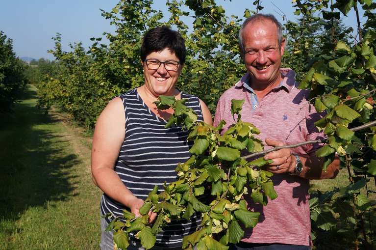 Ihr Weg zu den Haselnüssen verlief für Forsters recht zufällig. „2006 waren wir vom Feuerbrand betroffen und müssten viele Obstbäume fällen“, sagen sie. „Dadurch hatten wir eine freie Fläche, die wir wieder mit Bäumen nutzen wollten.“ Durch den bereits bestehenden Kontakt zur St.Galler Saatzuchtgenossenschaft war schnell die Idee geboren, auf die bis dahin in der Schweiz noch unbekannte Kultur der Haselnüsse zu setzen. „Zusammen mit Christoph Gämperli und Richi Hollenstein vom landwirtschaftlichen Zentrum St.Gallen in Flawil informierten wir uns auf Anlagen in Deutschland. Als Resultat entschieden wir uns, eine halbe Hektare mit diesen Bäumen zu bepflanzen.“