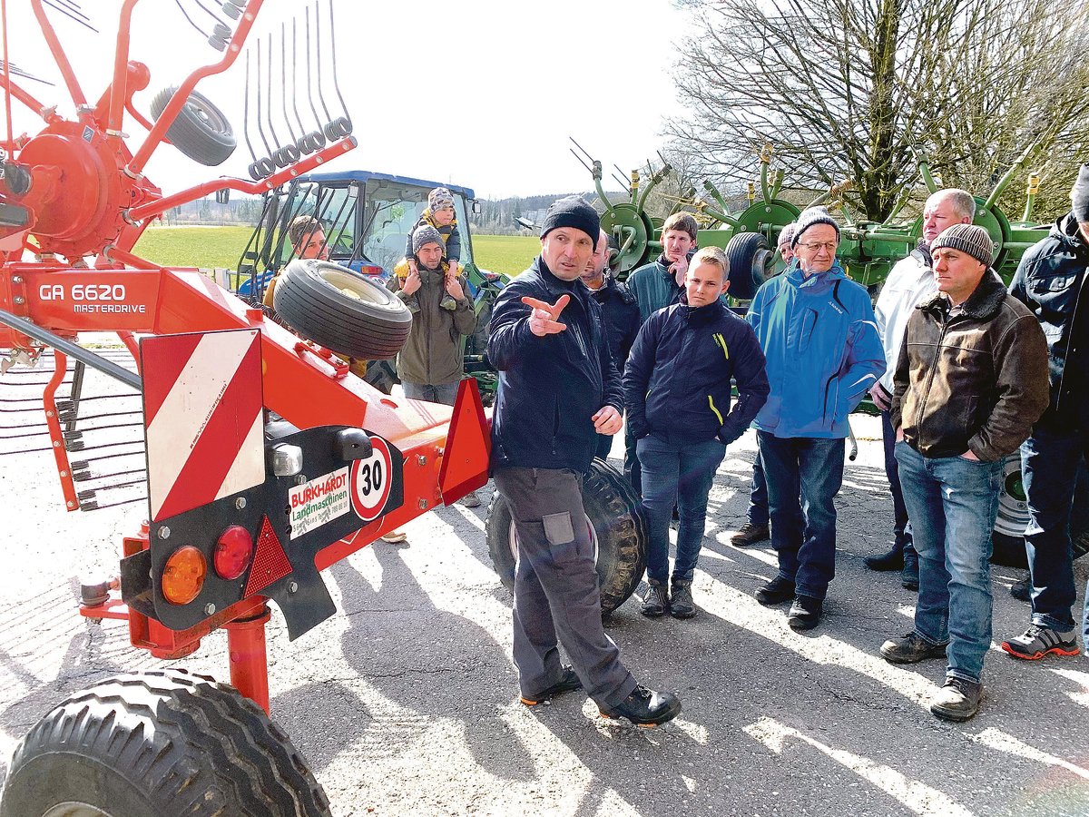 Aldo Rui vom Schweizer Verband für Landtechnik (SVLT) erläuterte an einem Traktor mit schwerem Anhänger das komplexe Thema Adhäsionsgewicht, wozu seit letztem Jahr ebenfalls neue Vorschriften gelten. So muss bei Fahrzeugkombinationen das Gewicht auf den Antriebsachsen mindestens 22 Prozent des Betriebsgewichtes betragen. Bei 40-Tonnen-Gefährten sei dies ohne Ballast wie Frontgewicht oder wassergefüllte Reifen kaum erreichbar, meinte Rui. Er riet den Traktorfahrern, die Angaben in den Fahrzeugausweisen zu beachten, die Gefährte zu wiegen und die zulässigen Adhäsionsgewichte zu berechnen. Dazu dienen Tabellen, die SVLT auf der Internetseite aufgeschaltet hat. «Wenn das einem die Polizei erklären muss, kann es teuer werden.»Josef Scherer