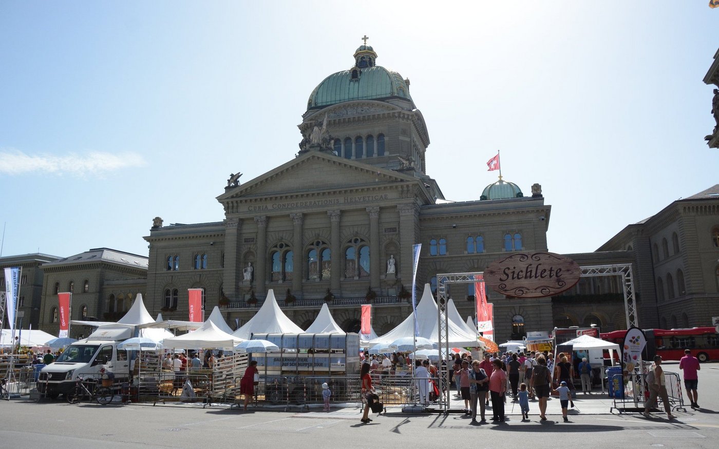 Die Sichlete füllt jedes Jahr den Bundesplatz mit Stadt und Land. 20 Jahre Sichlete auf dem Bundesplatz Monday, 17. September 2018 Zur Sichlete gehört traditionell auch eine Alpabfahrt. Die Familie Schweizer aus Utzigen hat dafür in den letzten Jahren ihre Herde nach Bern gebracht, um vom Nationalen Pferdezentrum, wo die Kühe gewaschen und geschmückt werden, Richtung Bundesplatz zu laufen. Ihr Weg wird immer von Tausenden von Zuschauerinnen und Zuschauern gesäumt, die es sich nicht entgehen lassen wollen, das Treicheln der Kuhherde zu erleben. Heuer können die Kühe aber nicht durch Bern laufen. Dafür sei aber nicht Covid-19 verantwortlich, wie Claudia Bernhard erklärt. «Der Alpabzug kann leider nicht stattfinden und zwar wegen einer Grossbaustelle in Bern. Die Kornhausbrücke ist gesperrt und wir könnten mit den Kühen nicht im NPZ starten. Ein anderer Startpunkt und eine neue Route sind schwierig, da wir einen Platz zum Ausladen, Waschen und Schmücken der Tiere benötigen.»