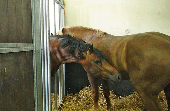 Immerhin sind hier in den letzten Jahren Fortschritte gemacht worden. Christa Wyss vom Nationalgestüt in Avenches stellte Ergebnisse einer Forschungsarbeit mit sogenannten Sozialboxen vor. Diese sind so gebaut, dass die Pferde in jeweils zwei nebeneinanderliegenden Einzelboxen durch weit geöffnete Gitterstäbe sozial interagieren können und zwar mit Körperkontakt, was in konventionellen Boxen mit engen Gitterstäben nicht möglich ist. Diese verstärkten Begegnungsmöglichkeiten haben die Hengste in Avenches ausführlich genutzt, wie Wyss erklärte.