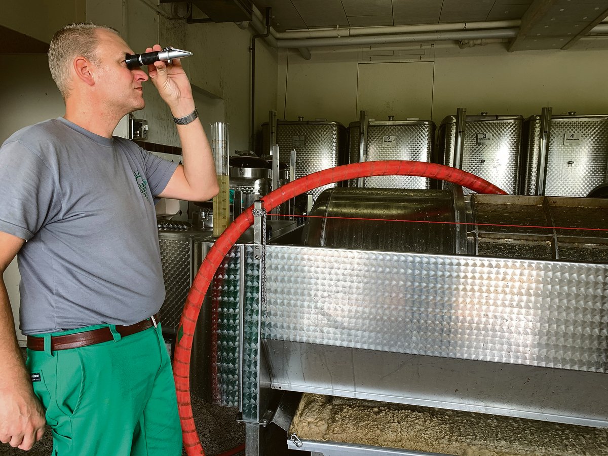 Ja. Die Ernte bei 25 Grad und mehr wie diese und vergangene Woche bedingt, dass die Trauben nach dem Abpressen sofort gekühlt werden. Denn wir wollen keine stürmische und unkontrollierte Gärung.
