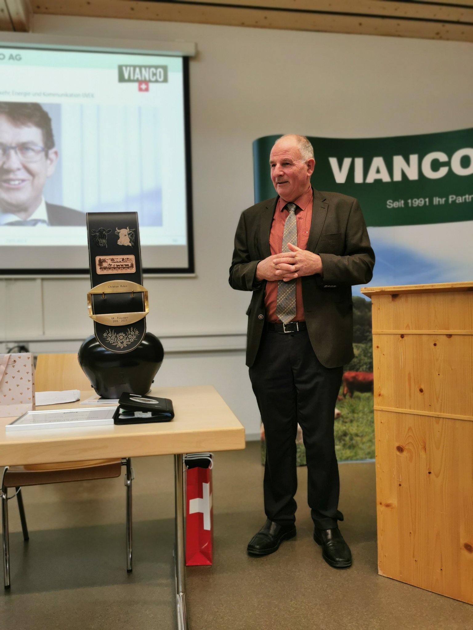 Mit seiner bescheidenen Art verabschiedete sich Christian Rubin mit den Worten: «Keiner ist so gut wie er weggelobt wird». Zuvor hatte er den versammelten Aktionären neben einem Rekordergebnis auch die Zukunftspläne der Vianco AG und das Geschäftsgeheimnis verraten: «Wir haben viele gute Leute, die jeden Tag hier eine grossartige Leistung erbringen. Wenn hier Auktionen stattfinden, auch bis spätabends», betonte er. Bei allen Sorgen, welche die Landwirtschaft aktuell habe dürfe man nicht vergessen: «Es geht uns gut, insbesondere, wenn wir um uns herum schauen».