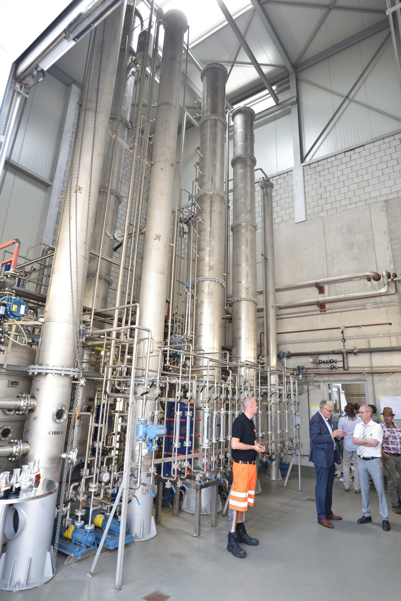 - Die Energie für die Destillation liefert das nahe Holzkraftwerk, das zu 100 Prozent mit Biomasse betrieben werde.