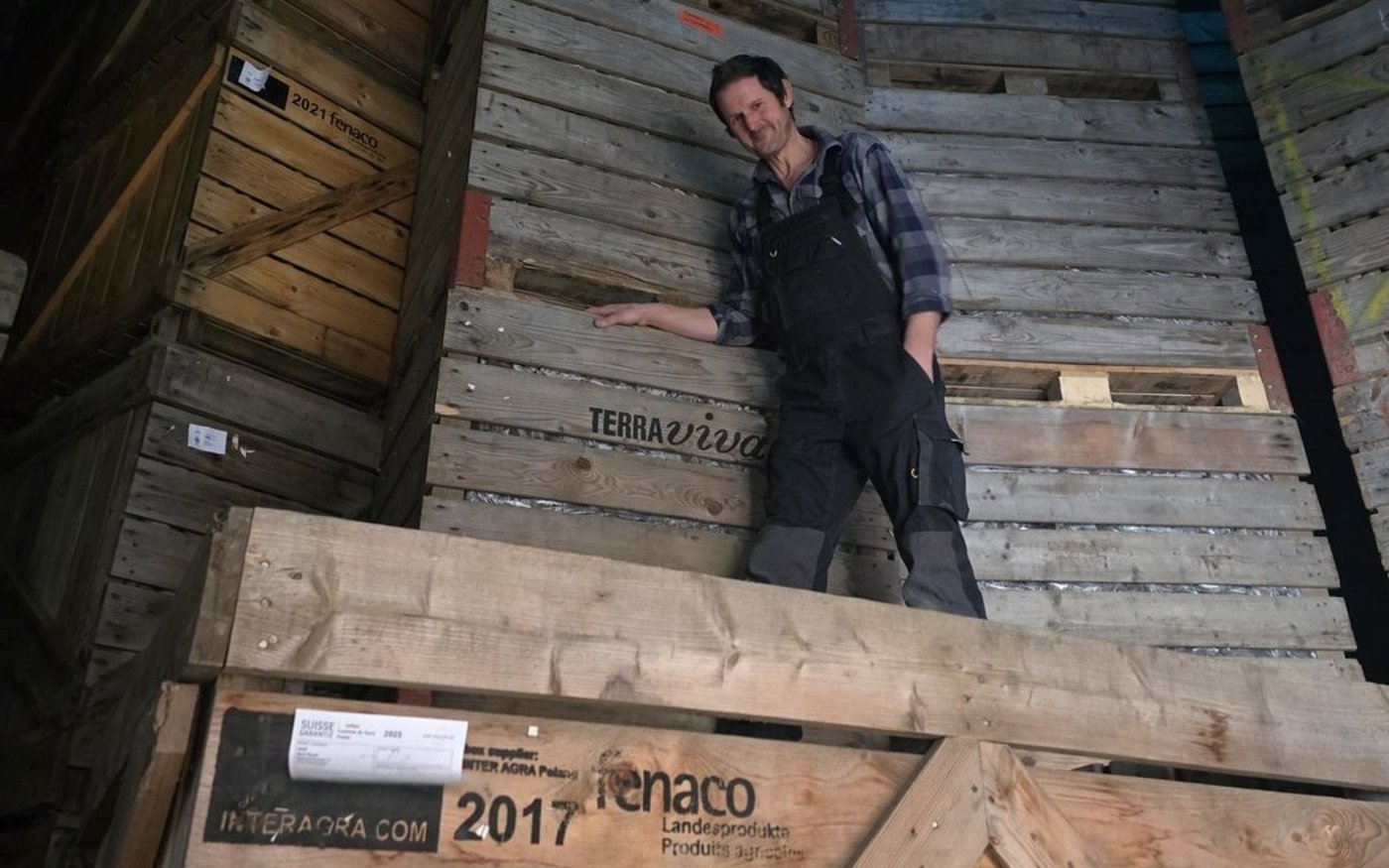 Bei Rysers auf dem Hof im bernischen Wichtrach dreht sich viel um die Kartoffel. Sie bauen hier im Aaretal zwischen Bern und Thun rund zehn bis elf Hektaren verschiedene Sorten an. Nicht nur die Mechanisierung dafür haben sie selber, auch ein eigenes Kühllager steht zur Verfügung – und das ist jetzt, wenig überraschend, voll bis auf den letzten Platz.