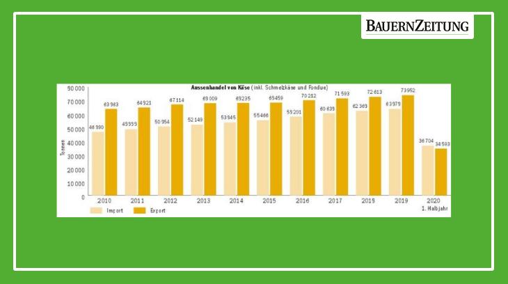 Im ersten Halbjahr haben die Käseimporte um 15,4 % (+ 4890 Tonnen) auf 36 704 Tonnen zugenommen. Selbst die Hartkäse, bei denen die Schweiz traditionell eine starke Marktposition einnimmt, weisen eine substanzielle Importzunahme um 26,9 % aus, was aufhorchen lässt. Während des Lockdowns und des damit einhergehenden verunmöglichten Einkaufstourismus haben sich preissensible Konsumenten in der Schweiz mit billigem Käse eingedeckt, was jetzt in der Statistik erscheint.