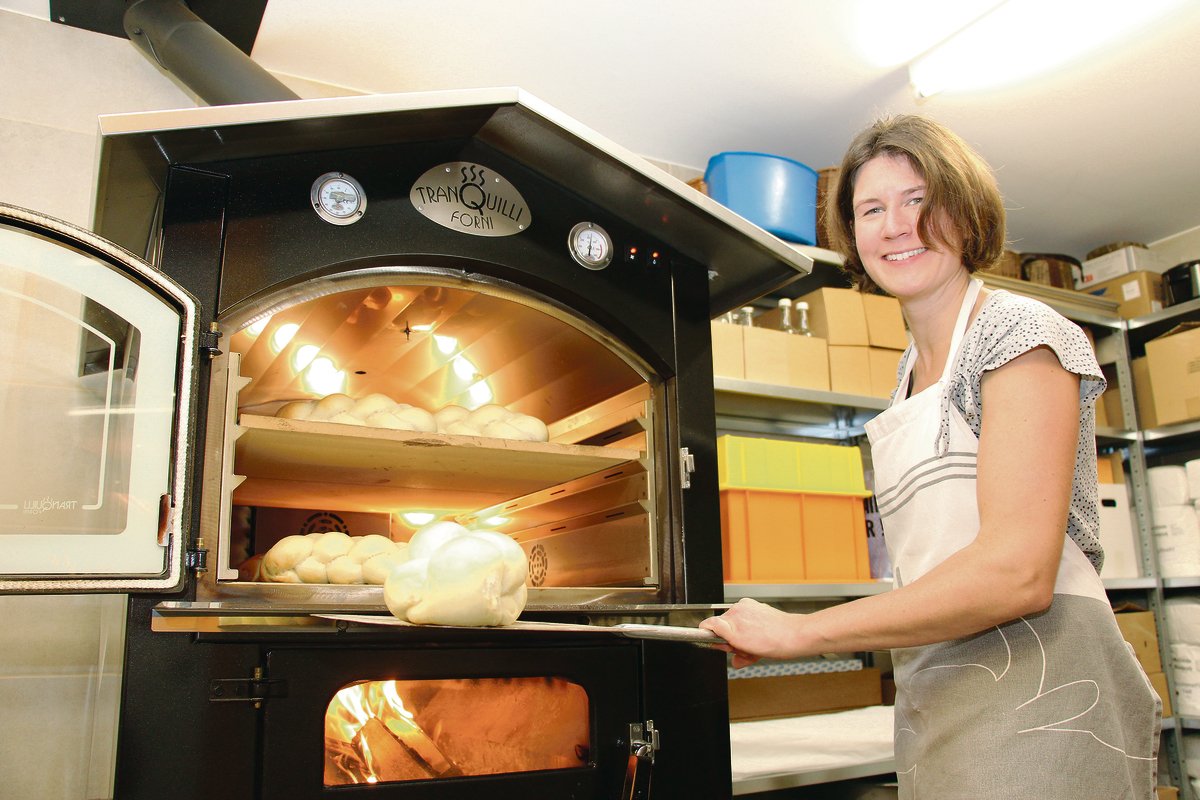 Es reicht nicht mehr, dass sie um vier in der Früh zum Backen aufsteht, nein, sie schiebt Nachtschicht. «Um halb zwölf Freitagnacht habe ich meinen Holzbackofen eingeheizt», erzählt sie. Am Freitag Nachmittag hat sie die Teige mit 120 Kilo Mehl vorbereitet «und dabei hat sich die Knetmaschine überhitzt so dass ich ihr eine Abkühlpause gönnen musste», erzählt sie.