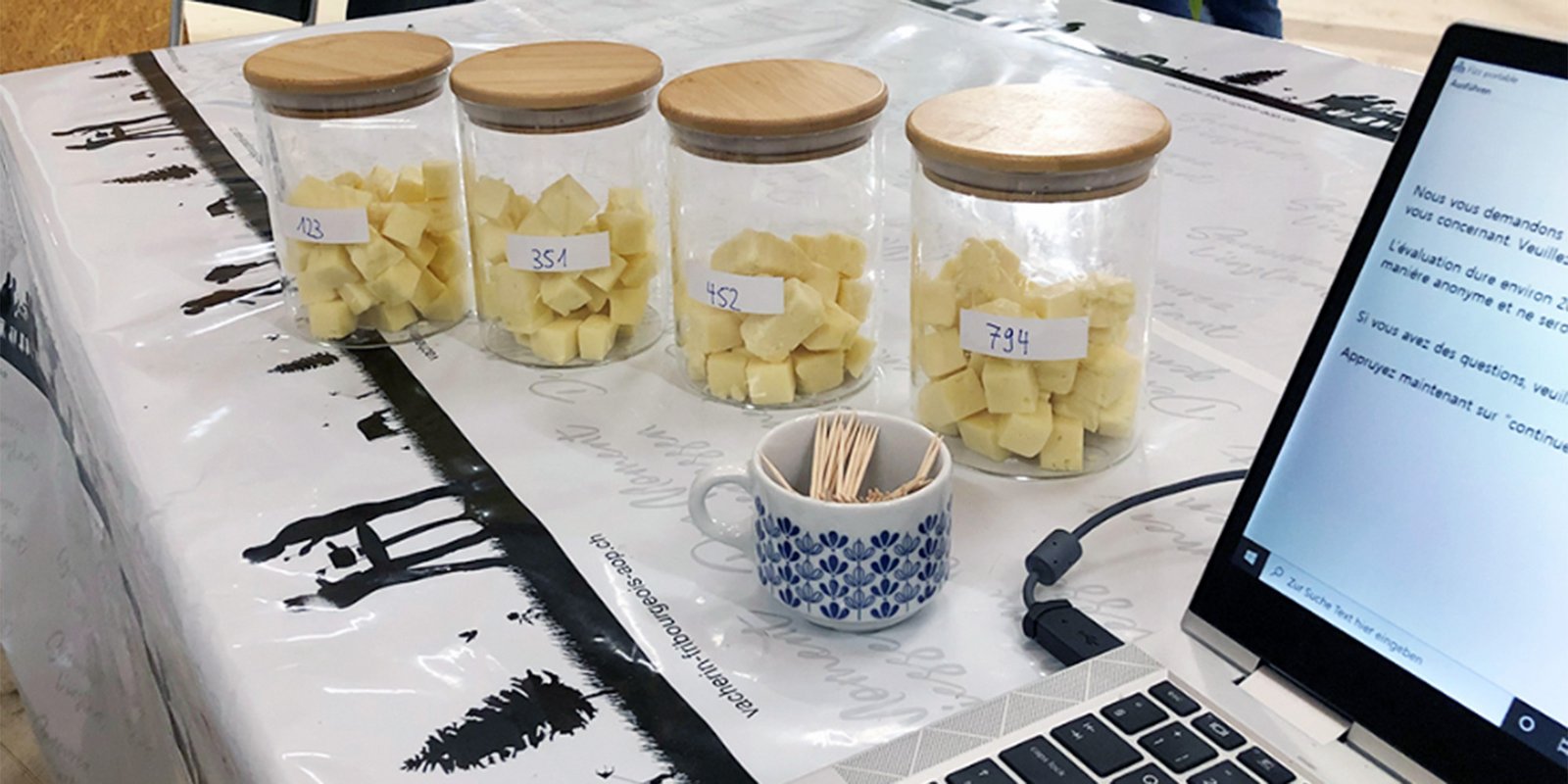 In der Konsumentenstudie wurde 245 Teilnehmenden Vacherin-Fribourgeois-Käse in vier Varianten vorgesetzt: jeweils jung (7 Wochen gereift) und reif (12 Wochen gereift) aus thermisierter Milch und jung (6 Wochen gereift) und reif (15 Wochen gereift) aus Rohmilch.
