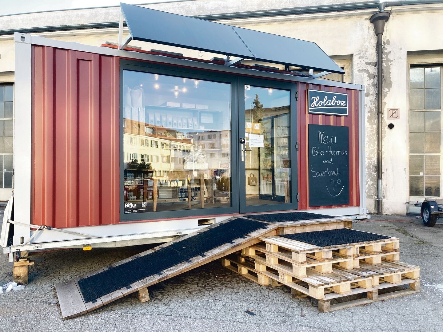 Die «Holabox» ist ein Beispiel für einen Hofladen, der sich flexibel einsetzen lässt. Dabei handelt es sich um einen Schiffscontainer mit einer Fläche von zwölf Quadratmetern, der nach Bedarf gezügelt werden kann. Der Selbstbedienungsladen ist mit einem digitalen Kassensystem ausgerüstet und rund um die Uhr zugänglich. Tagsüber ist die Türe offen, nachts ist der Zugang über eine automatisierte Telefonnummer möglich. Betrieben wird die «Holabox» von einer Agrarkooperation, die sich aus Bauern aus dem Zürcher Weinland zusammensetzt. Diese liefern die Lebensmittel, die ohne den Einsatz von Pestizidenund Kunstdünger produziert werden. Auch erfahren die Kundinnen, welche Produkte von welchem Hof stammen. Die erste «Holabox» steht derzeitin der Stadt Winterthur, weitere sind geplant