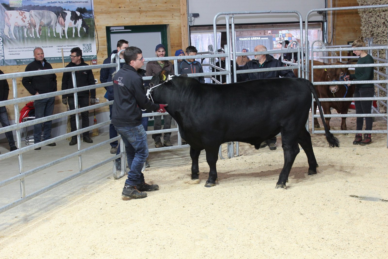 Am Donnerstag, 11. Januar, fand in der Vianco-Arena in Brunegg AG der 98. Stierenmarkt für Fleischrinderrassen statt. Zur Beurteilung aufgeführt wurden 72 Stiere, davon standen 59 zum Verkauf. Vor der Auktion war der Auktionator Urs Jaquemet skeptisch, ob die Stiere angesichts der geringen Besucherzahl und teilweise knapper Futtervorräte alle einen Käufer fänden. Ermutigend verwies er deshalb auf den gut laufenden Labelmarkt. So gälten etwa Natura-Beef Fr. 12.50 je kg Schlachtgewicht (SG), Natura-Veal 18 bis 19 Franken je Kilo SG und Swiss Black Angus um die 12 Franken je kg SG. Am Ende waren alle Zuchtstiere verkauft.