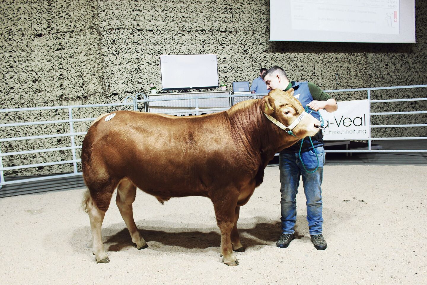 Die Auktion startete mit den Limousin, beginnend mit den höchstpunktierten Stieren. Der mit 93 Punkten in der Synthese beurteilte, knapp 14 Monate Elitestier Wildhabers Mambo war seinem neuen Besitzer 6400 Franken wert. Die folgenden Stiere galten 5700 bis 6100 Franken. Burris Cyril, der am Vortag gewählte Champion der Limousin, galt 7600 Franken. Der ausgeglichene Stier lief ruhig am Halfter, wie man es von Burris-Stieren gewohnt ist. Der ausgeglichene, 14 Monate alte Elitestier hat Vorfahren aus Australien und den USA.