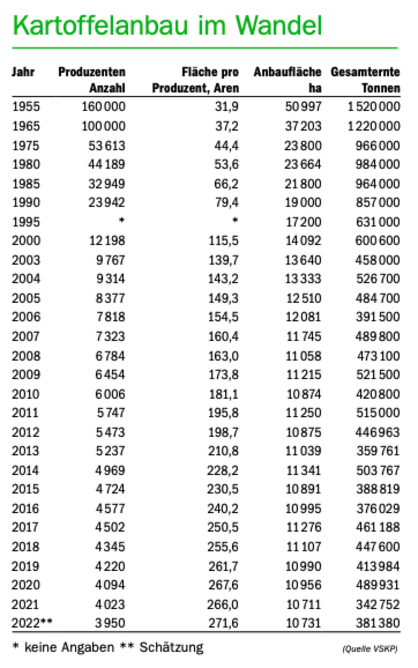 5817 Produzenten gaben im gleichen Zeitraum den Kartoffelanbau auf.