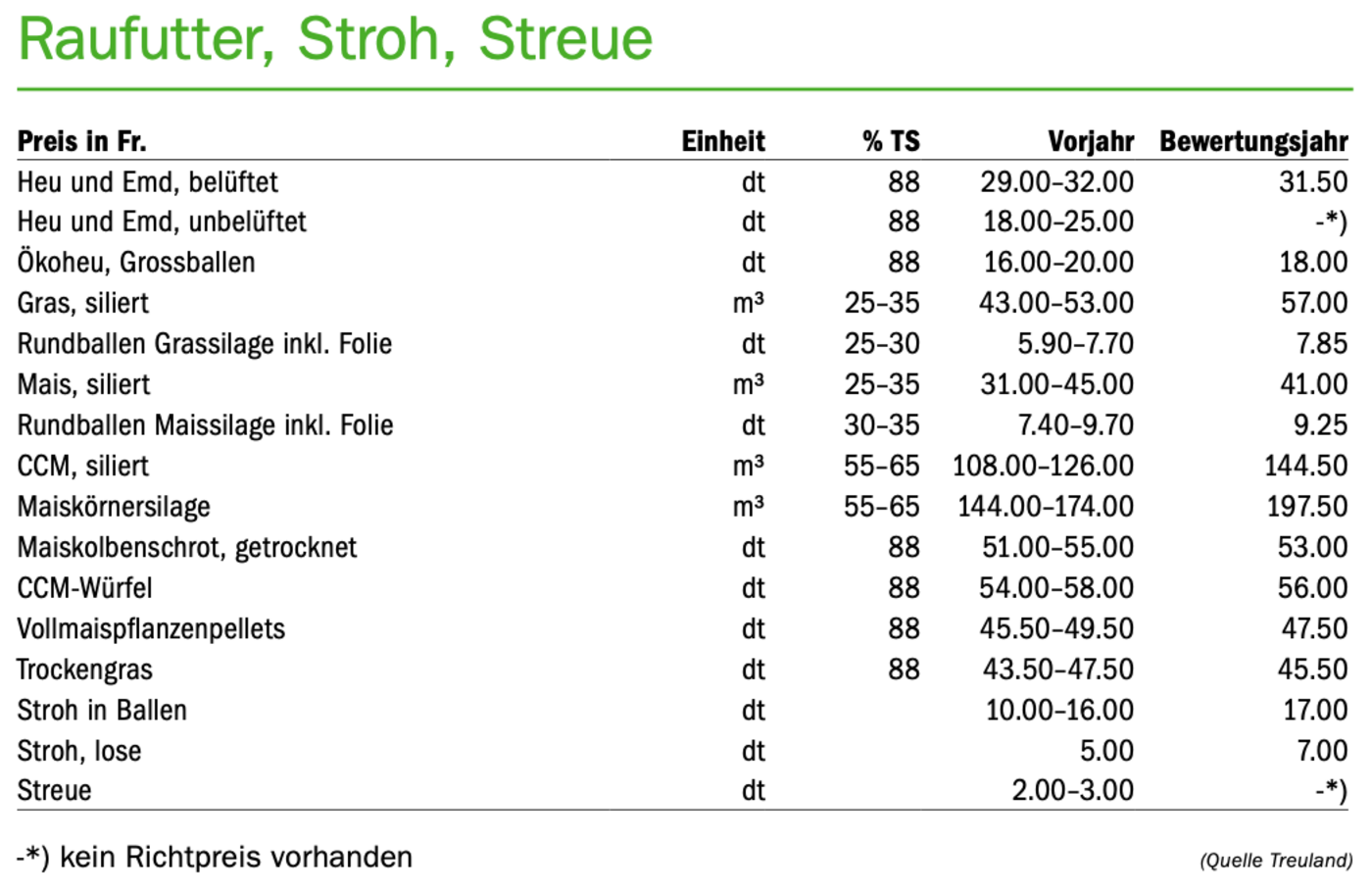 Die Produktion von Raufutter, Stroh und Streue ist zwar durch teurere Produktionsmittel kostenintensiver, am Futtermarkt sind die Preise jedoch nur leicht gestiegen. Entsprechend werden die Vorräte hier eher zurückhaltend bewertet. Wie viel Winterfutter es tatsächlich brauchen wird und wie sich die Preise bis zum Frühling entwickeln werden, ist weitgehend wetterabhängig. Im Sommer und Herbst hat sich ausserdem gezeigt, dass man dank den guten Schlachtviehpreisen eher die Bestände reduziert, statt Futter zu kaufen. Deutlich teurer ist Ergänzungsfutter aufgrund weltweit knapper Getreidereserven und gestörter Handelsströme.