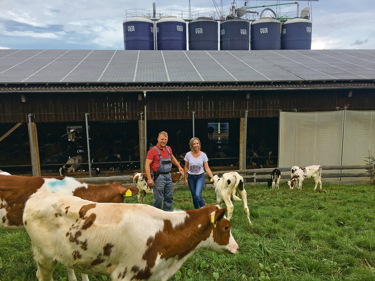 Die Leistungen der Kühe sind für ihn nicht unwichtig im Nutztierverkauf. Aus betrieblichen Gründen nimmt Gerber «nur» gelegentlich an Viehschauen teil. Freut sich aber, wenn sein Präfix (TGD Holstein) über den Verkauf trotzdem an den Schauen präsent ist. «Schauen gehören dazu und machen Freude», findet auch Christine Gerber. Sie ist nebenamtlich Geschäftsführerin bei SHB Luzern und kümmert sich auch um das Betriebsbüro. Nebst Christine und Thomas Gerber arbeiten Matthias Gerber, dessen Frau sowie die Eltern auf dem Betrieb mit. Jeder hat sein Spezialgebiet, Wochenende- und Ferienablösungen sind aber möglich. Thomas kümmert sich um das Milchvieh, die Aufzuchttiere sind ausgelagert. Nebst Melken und Fütterung gehören für ihn auch das Besamen und die Klauenpflege dazu. Bruder Matthias ist der Maschinist auf den gut 50 Hektaren LN. Vater Josef kümmert sich um die Mastschweine.