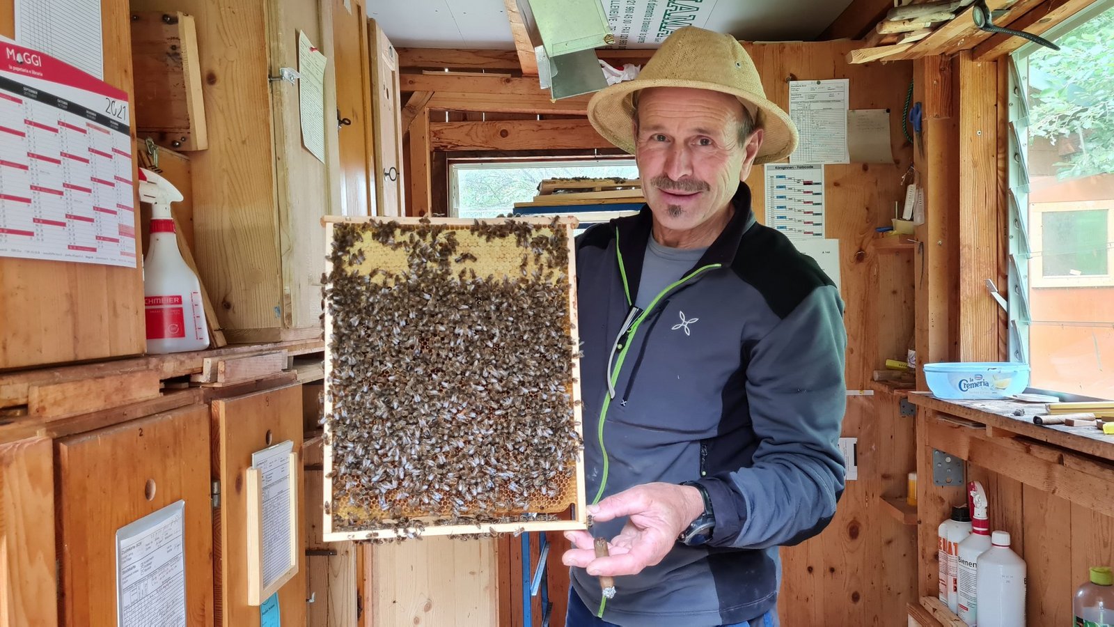 Aber auch später hat es mehrere Wetter- und Temperaturextreme gegeben. All dies war sehr anstrengend für die Völker und hat ihre Arbeit enorm beeinflusst. Sie kamen im Frühling kaum dazu, Nektar einzubringen und auch in den Sommermonaten sei es kaum besser gewesen. «Regen und immer wieder heftige Gewitter haben den Nektar fortwährend von den Blumen gewaschen», erklärt Flepp. Wie er von Kollegen weiss, sei die Saison 2021 für die Imker im Unterland noch schlechter gewesen als für jene in den alpinen Regionen.