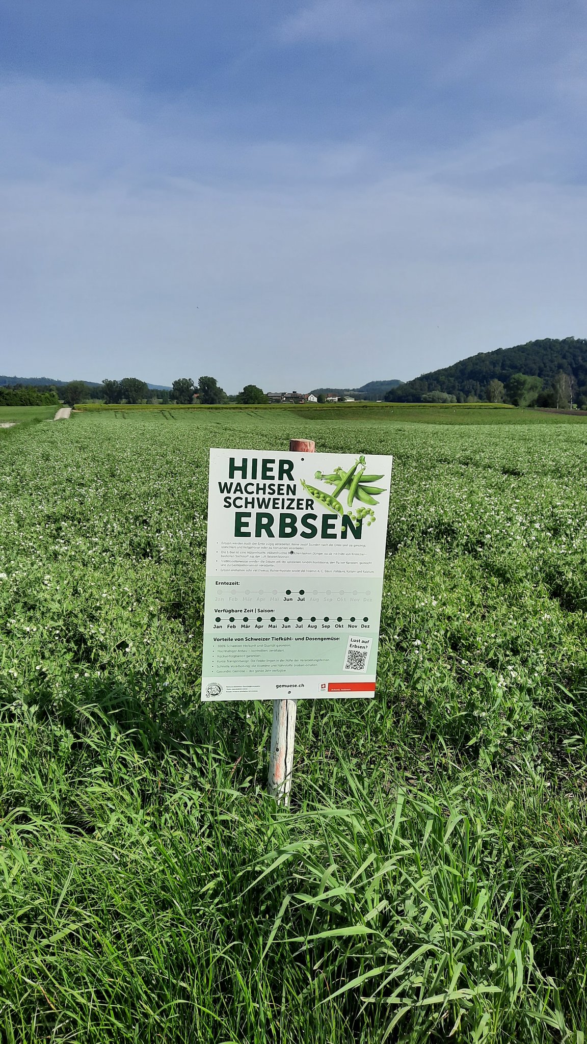 Erbsen seien eine relativ anspruchslose Kultur und bräuchten keinen Dünger. «Sie zeigen aber Bodenverdichtungen oder Stellen, wo der Boden ungesund ist, genau an.» Laut Messerli braucht es eine bis zwei Unkrautbehandlungen und eine Behandlung gegen Blattläuse sei meist Thema, manchmal auch gegen andere Schädlinge. «Die Kulturdauer ist mit 60 bis 90 Tagen kurz.» Gute Pflege sei wichtig, wenn der Anbauberater eine Behandlung empfehle, müsse man diese rasch umsetzen, «weil es weniger verträgt als zum Beispiel bei Raps oder Weizen».