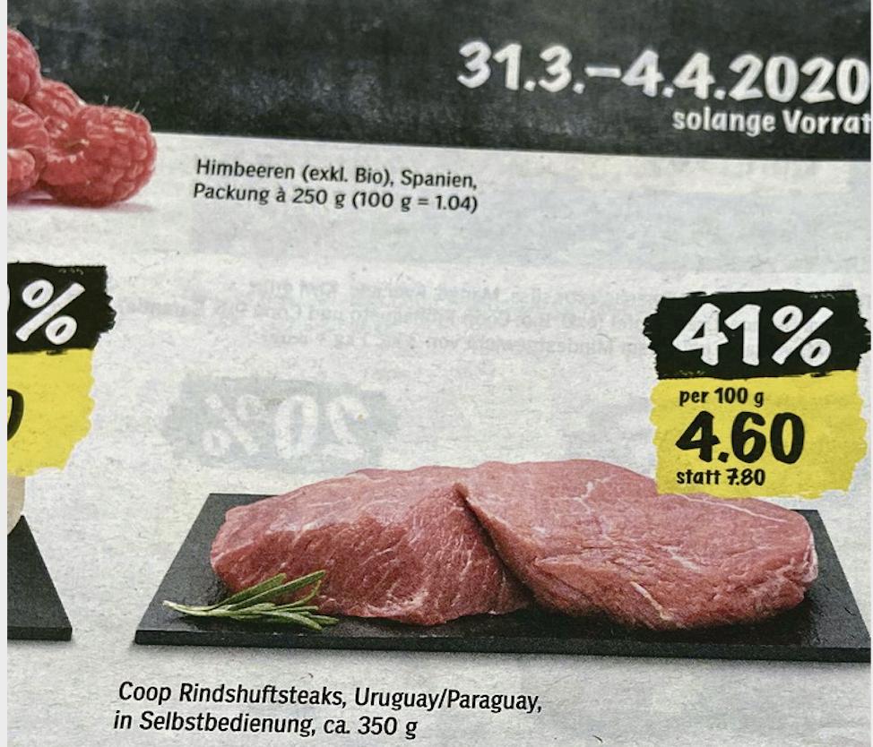 Dass die Preise bei allen Rindviehkategorien unter Druck geraten sind, ist auf die grosse Verunsicherunng zurückzuführen, welche durch die beinahe komplett wegfallende Nachfrage aus der Gastronomie entstanden ist. Vor allem Edelstücke, welche mehrheitlich in den Restaurants gegessen werden, werden momentan viel weniger nachgefragt, davon sind auch die Importe betroffen. Aber auch das Interesse an Verarbeitungsfleisch hat unter anderem durch die komplette Schliessung aller McDonald’s-Filialen einen starken Rückgang erfahren.