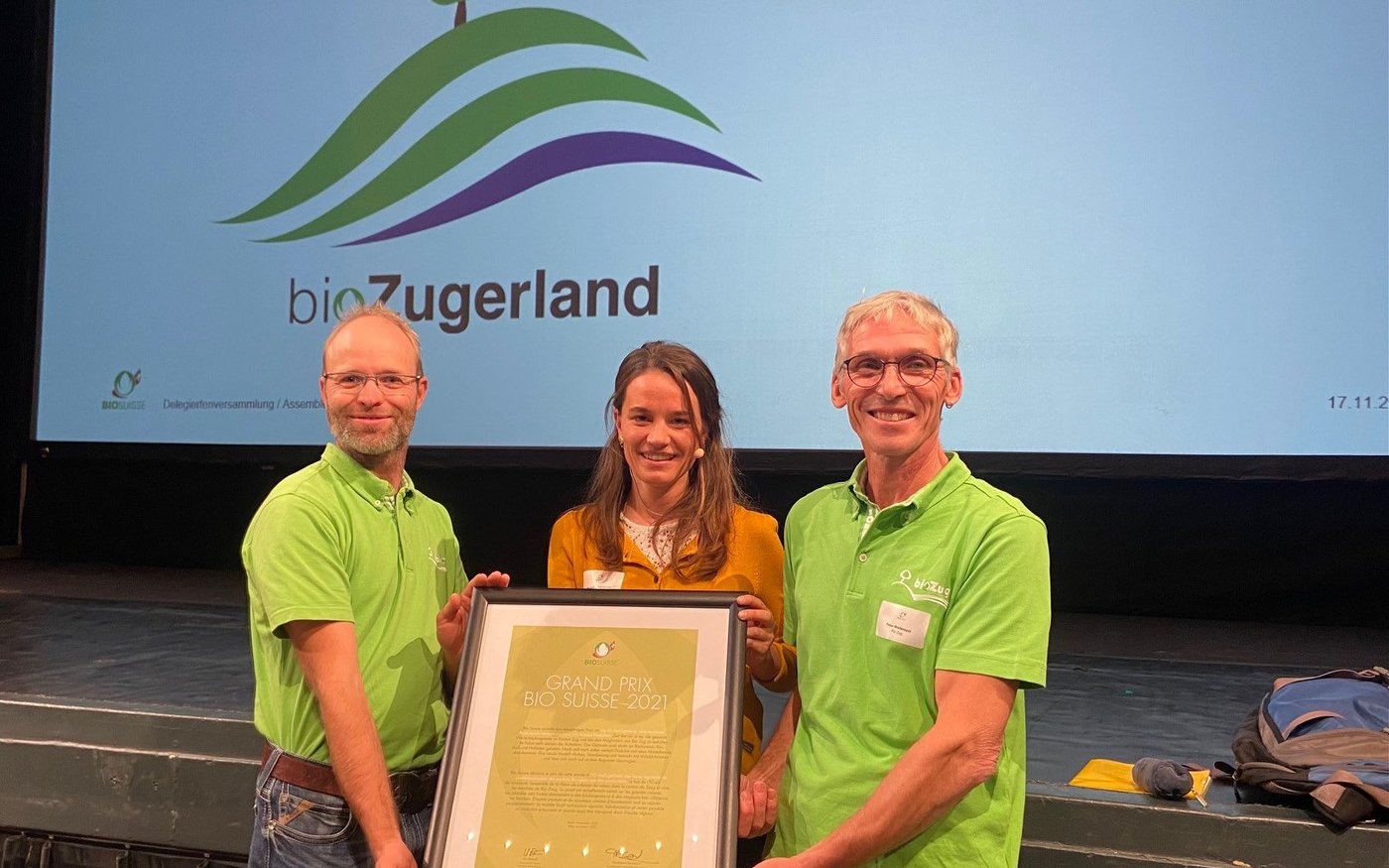 «Aus Zug für Zug» lautet der Claim der IG Bio Zugerland. Heute haben sie anlässlich der Delegiertenversammlung der Bio Suisse den Grand Prix, eine Auszeichnung für erfolgreiche Vermarktungsprojekte gewonnen.