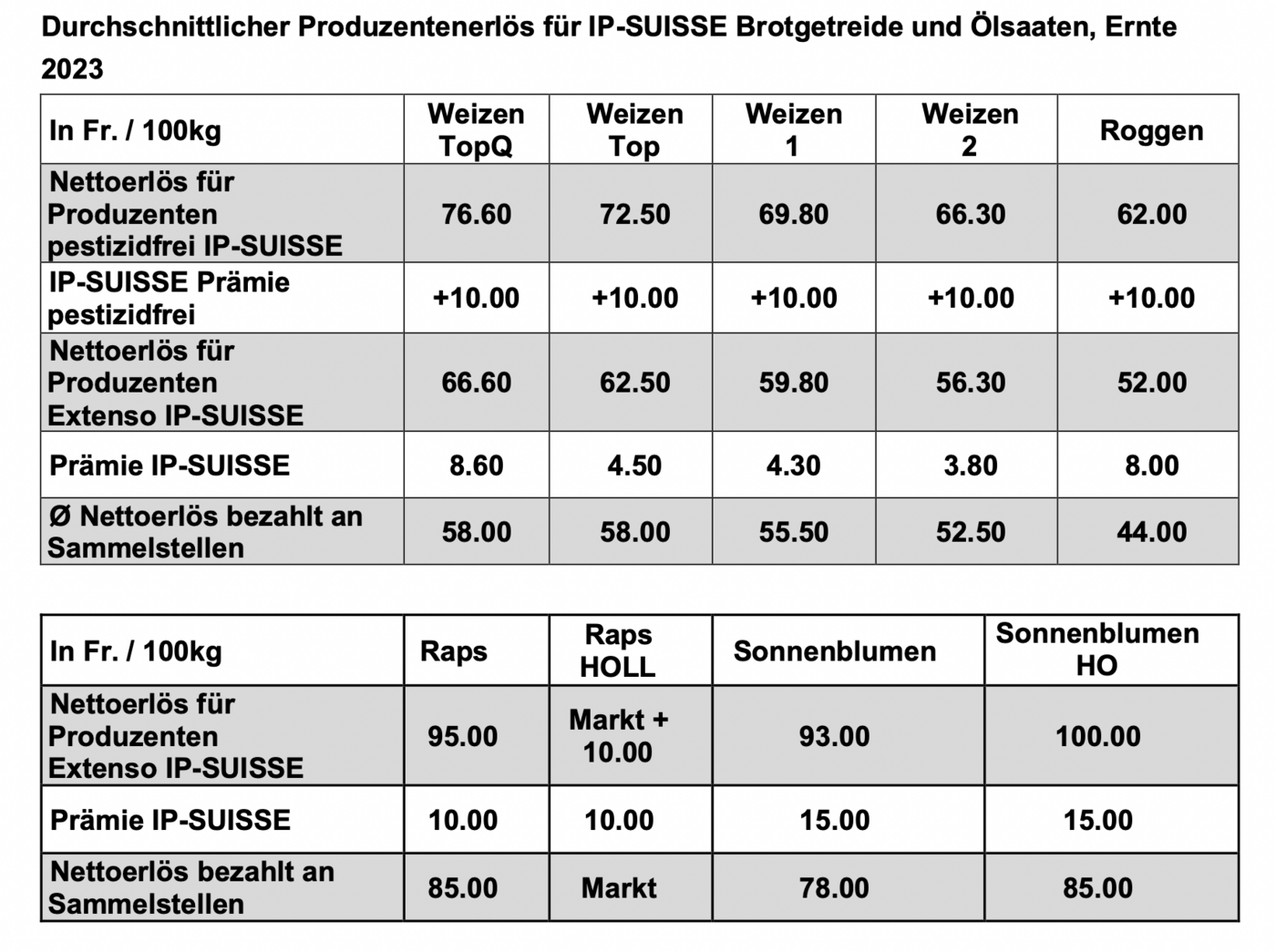 Die Preise für Ölsaaten seien für die vergangene Ernte ebenfalls wieder auf das Preisniveau von vor Covid gesunken, schreibt IP-Suisse. Diese Preise sind auch für die Schweizer Produzenten direkt an die Ölpreise auf den Weltmärkten gekoppelt und daher volatiler als die Schweizer Getreidepreise.