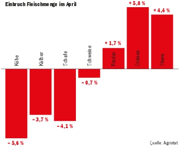 Der Schlachtviehmarkt hat sich nach dem Einbruch im März und April überraschend gut erholt. Das Angebot an Schlachtvieh aller Art ist normal bis sehr knapp. Die Produzentenpreise sind so hoch wie schon lange nicht mehr. Die Aussichten auf dem Viehmarkt bleiben weiterhin gut.