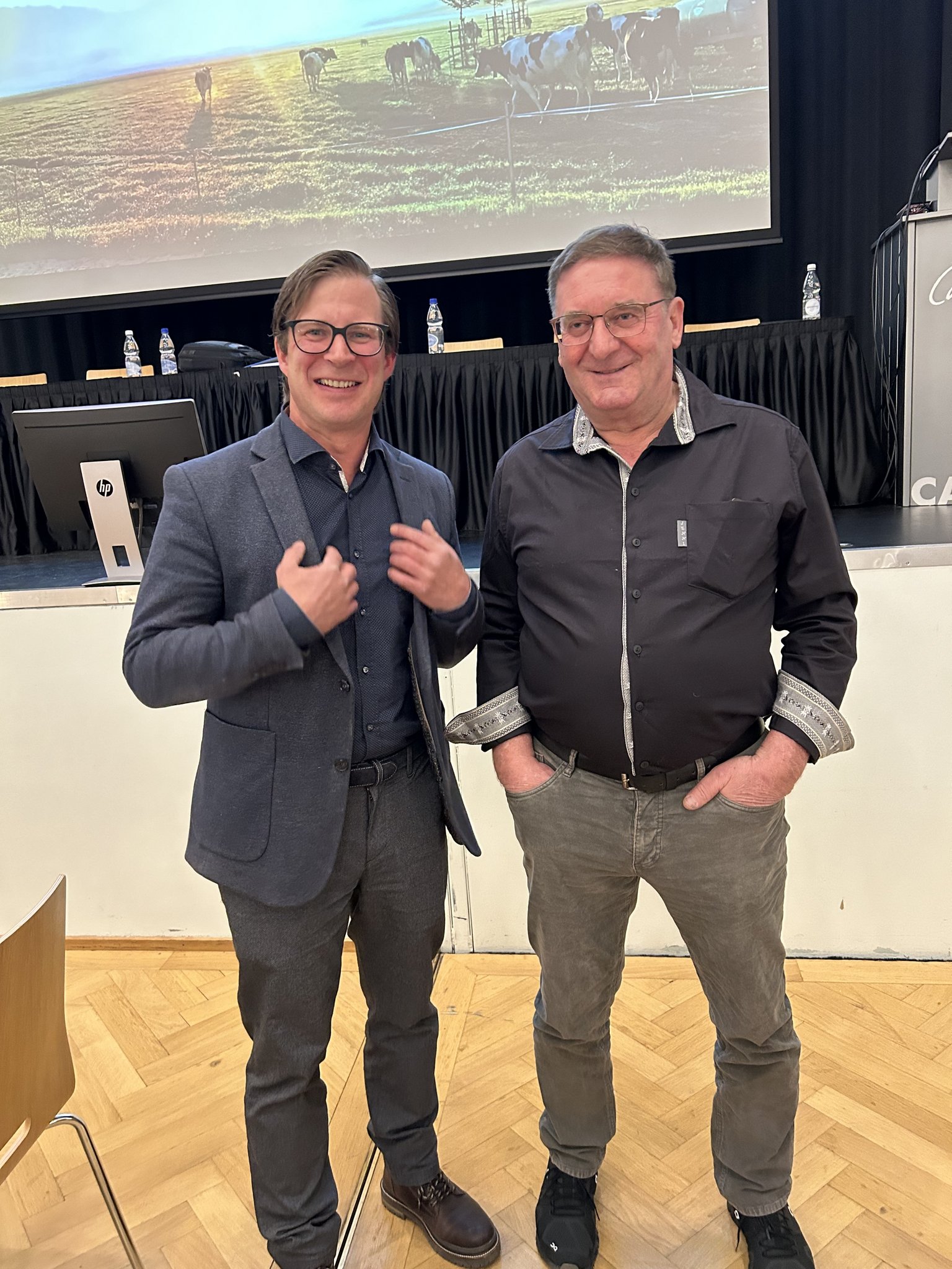 Christof Züger bleibt wie sein Bruder Markus im Verwaltungsrat. Die operative Leitung der Züger-Gruppen, namentlich für die Tochterfirmen in Deutschland und das Auslandgeschäft, liegt im Aufgabenbereich von Christof Züger. «Ab 2025 habe ich etwas mehr Zeit, dann werde ich sicher den einen oder anderen von euch besuchen», versprach er den Versammlungsteilnehmern. Sein Bruder Markus Züger gab Änderungen im Nachhaltigkeitsprogramm «Swiss Family Milk», bekannt, die sich aber allesamt auf Punktverschiebungen bei einigen wenigen Aspekten bezogen. Einzig bei energiesenkenden Massnahmen empfahl er, den Newsletter von Klimastar Milch zu abonnieren. [IMG 3]