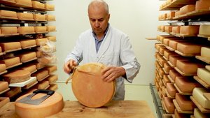 Die eingeschnurpften Käselaibe sehen gewöhnungsbedürftig aus, wie sie da im Keller auf Holzbrettern vor sich hin reifen. Sobald sie aber ausgepackt sind, zeigen sie die für geschmierten Käse typische orange-braune Rinde und auch der Geschmack soll überzeugen – aber nicht nur.