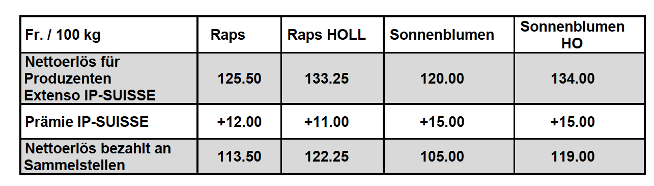 Die Preise für Ölsaaten sind für die Ernte 2022 erneut gestiegen. Der Marktpreis liegt derzeit mehr als Fr. 30.-/dt über dem Preis der Ernte 2020, was einem Anstieg von mehr als 30 % entspricht. Dieser Anstieg ist auf mehrere Faktoren zurückzuführen, von denen einige vorübergehender Natur sind, wie die Instabilität der Pflanzenölmärkte infolge des Krieges in der Ukraine, aber auch auf andere, hoffentlich dauerhaftere Faktoren, wie die Neupositionierung dieser Ölsaaten im Vergleich zu den anderen Kulturen in der Fruchtfolge. Ziel ist es, die Attraktivität des Anbaus zu erhalten und damit die Anbauflächen zu sichern. Interessante Preise für die Produzenten, um Flächen bzw. eine stabile Versorgung zu sichern, sind auch in der Schweizer Landwirtschaft eine neue Realität.
