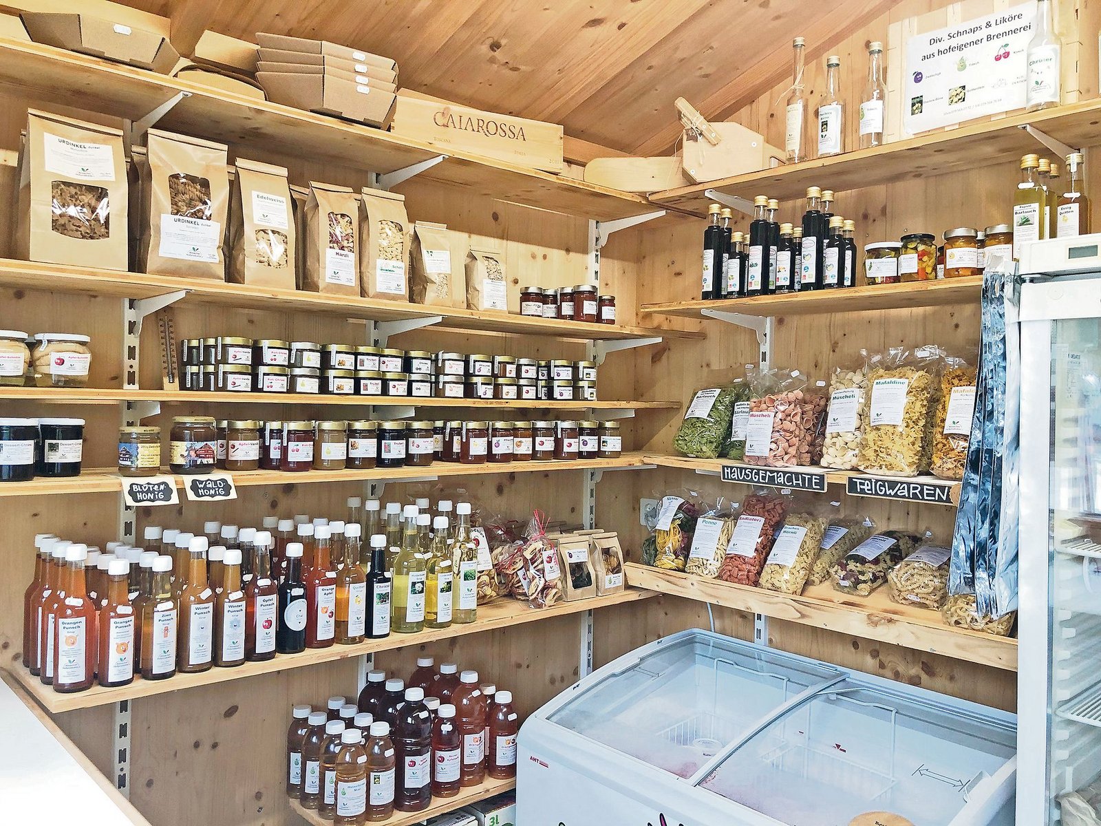 Über 150 Produkte stellen Edi und Silvia Meier eigenhändig her. Von Teigwaren über Sirup bis hin zu diversen Glacesorten, alles aus eigener Produktion. Edi Meier führt stolz durch seine Glace-Produktionsstätte. «Glace machen ist ein Knochenjob, viele stellen es sich sehr romantisch vor», erzählt er. Dass es in der grossen Küche zu hohen Temperaturen und Lärmemissionen kommt, sei vielen nicht bewusst. Wenn alle Maschinen laufen, verstehe man oft seine eigenen Gedanken nicht. Den Kopf müsse man trotzdem bei der Sache haben. Zum Glacemachen seien sie per Zufall gekommen, eigentlich wollten sie damals mit der geliehenen Maschine eines Freundes die Kinder ein wenig unterhalten und verköstigen. Kurz darauf stand die Glace im Hofladen zum Verkauf. Silvia Meier ist der kreative Kopf der «Alisacher Hofprodukte». Sie liebt es, neue Rezepte auszutesten und den Hofladen zu gestalten. Das merkt man, wenn man den liebevoll eingerichteten Hofladen betritt. Im ersten Lockdown erlebte dieser seine Blütezeit. «Die Leute hatten wohl Zeit, die Gegend zu erkunden», meint Silvia Meier, denn der Hof liegt etwas abgelegen auf gut 830 Metern über Meer.