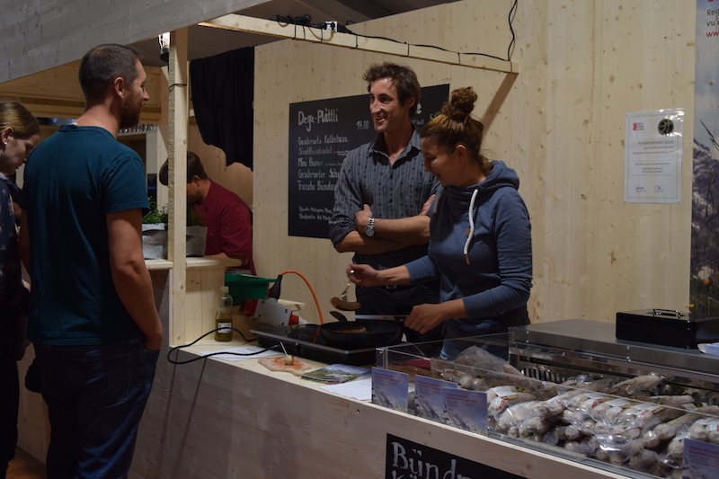Jeden Tag gab es zudem verschiedene Kochshows, bei denen die Besucher live mitverfolgen konnten, wie aus regional produziertem Fleisch vielfältige Menüs entstehen. Am Sonntag zum Beispiel stellte Hansjörg Ladurner, Küchenchef im Hotel Schweizerhof in der Lenzerheide, Gitziwürste her, wo die Kinder mithelfen konnten.
