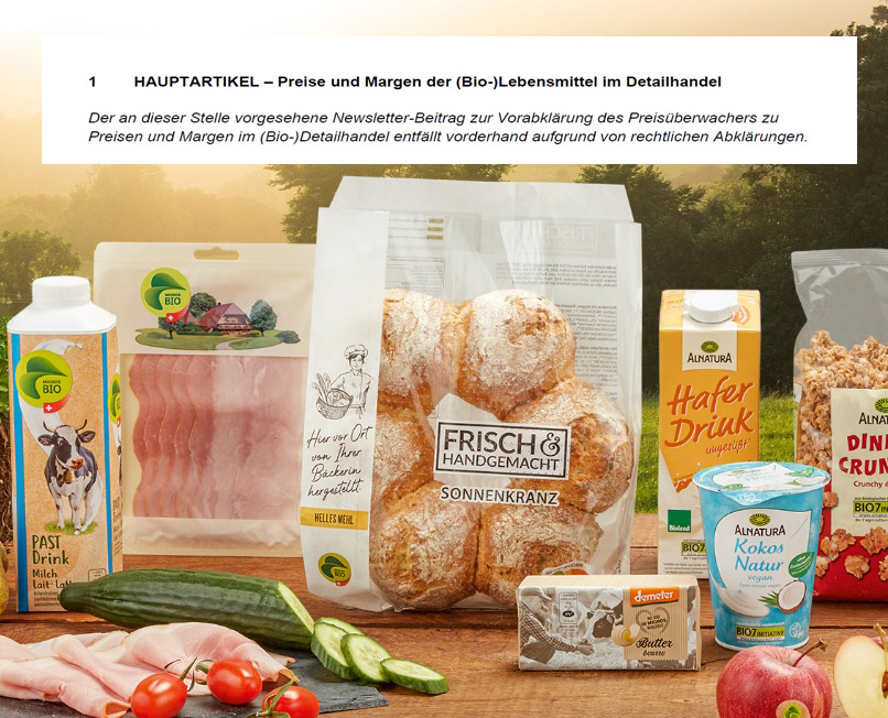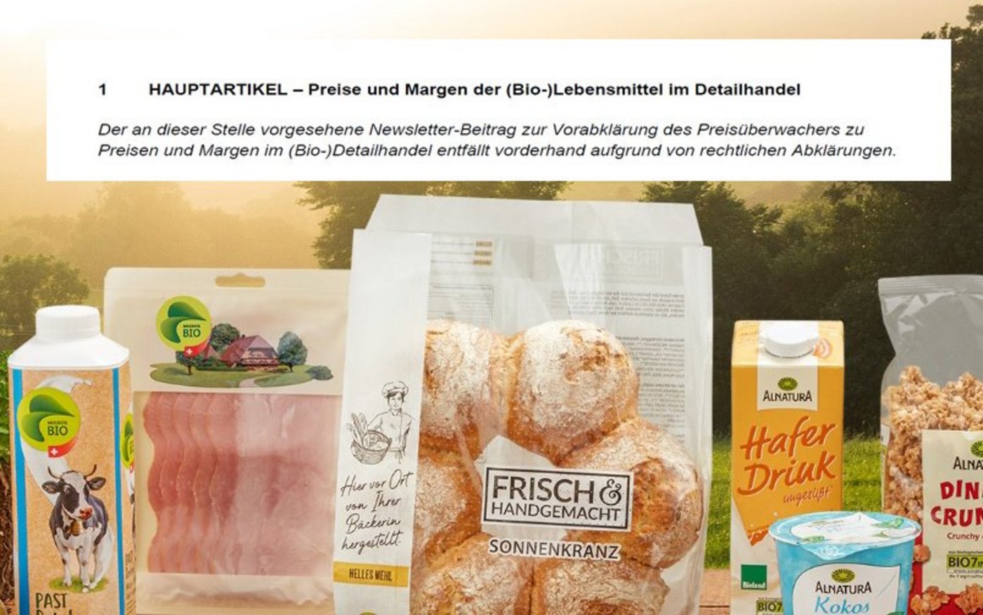 Zuvor war bekannt geworden, dass der Schweizer Preisüberwacher offenbar daran gehindert wurde, einen Bericht zu angeblich überhöhten Preisen bei Bio-Produkten zu veröffentlichen. Aufgrund von «rechtlichen Abklärungen» blieb die entsprechende Seite im Preisüberwacher-Newsletter vom Mittwoch leer, wie das Schweizer Fernsehen SRF am Freitagabend berichtete. Laut dem Medienbericht soll die Migros den Publikationsstopp erwirkt haben.