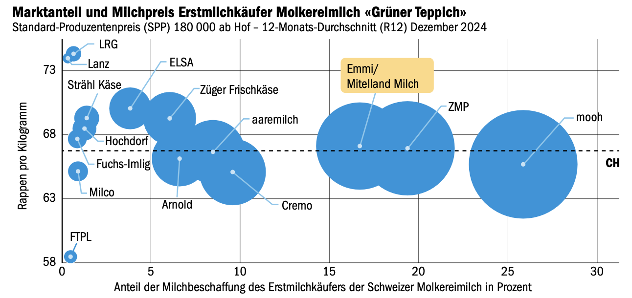 «Im Jahr 2024 konnte Emmi beim Milchpreis wieder aufholen», erklärte Sabrina Schlegel. Der Preis lag leicht über dem Branchenschnitt. Gleichzeitig erinnerte sie an die laufenden Kosten für Butter- und Rahmexporte, die aktuell hauptsächlich Emmi, ihre Produzent(innen) und weitere Exporteure tragen – über einen Abzug von 1 Rappen pro Kilogramm Milch.