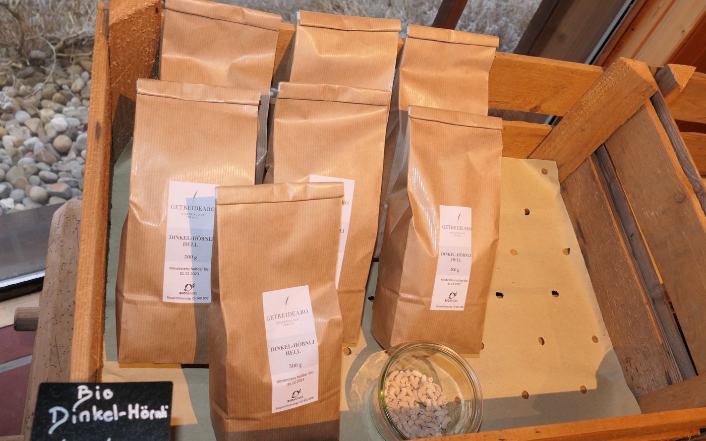 Das Getreide-Abo funktioniert so: Anfang Jahr können die Kund(innen) ihre Bestellung aufgeben. Im Angebot sind verschiedenste Getreideprodukte wie Körner und Mehl von Dinkel, Weizen, Hafer und Buchweizen. Dazu kommen Flocken, Sonnenblumenkerne, Linsen und verarbeitete Produkte wie Teigwaren. Spitzenreiter bei der Nachfrage sind die Haferflocken. Die bestellten Mengen werden je nach Wunsch ein- bis viermal pro Jahr direkt nach Hause geliefert. Wer möchte, kann sie auch selbst abholen.