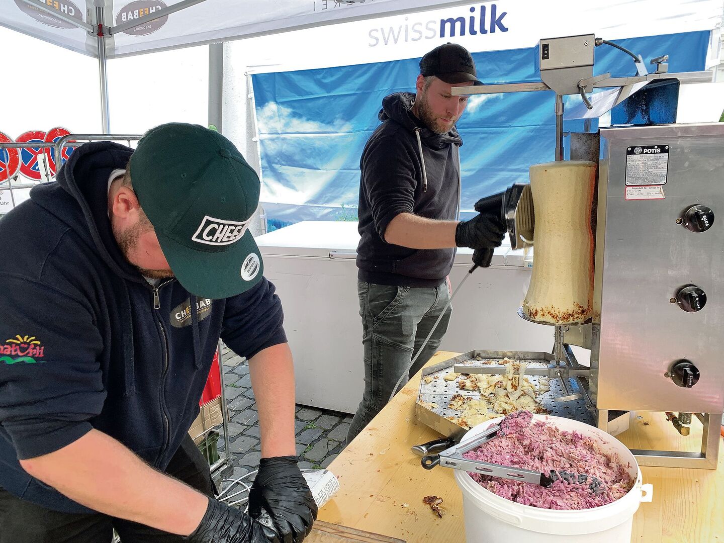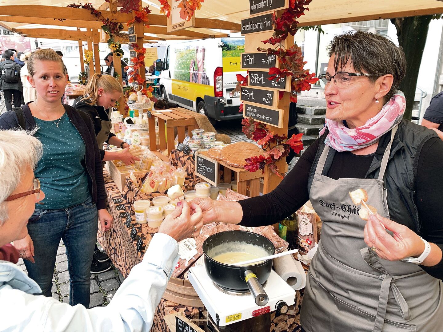 Im Laden der Dorfchäsi seien zwar Convenience-Produkte gefragter, aber auch der Offenverkauf von Käse sei gerade bei jungen Familien wieder zunehmend. «Vegan ist aber bei uns überhaupt kein Thema.» In Luzern bot die Dorfchäsi pfannenfertige Fondues an, die auch degustiert werden konnten, sowie Emmentaler in drei verschiedenen Reifegraden. Auf einem Schneidetisch imponierte die Besucher das Ausmass eines ganzen Laibes. Die Zukunft von Käse aus silofreier Milch sieht Kaufmann positiv, die Produktion sei zwar anspruchsvoller, aber naturnah und habe für die Schweiz eine herausragende Position im globalen Käsemarkt.