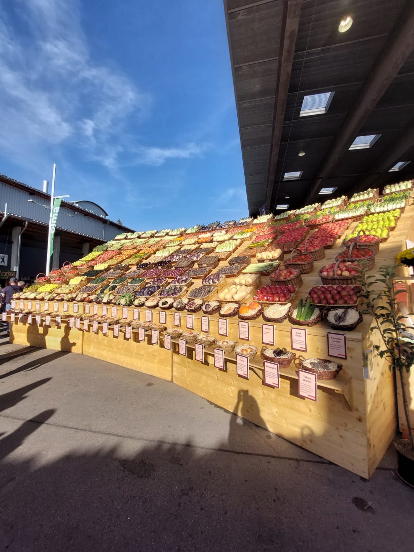 Neben dem Genuss frischer Äpfel und einem Blickfang in Form einer Wand aus Obst und Gemüse bot die Sonderschau Früchte an der Olma ein Buzzer-Spiel zu den Vorteilen verschiedener Früchte, eine Schweizerkarte mit Informationen zu regionalen Spezialitäten und eine Ausstellung mit 44 beliebten, alten und robusten Apfelsorten.