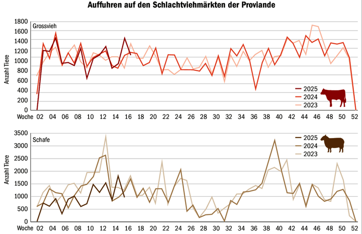 Im vergangenen Jahr fanden 629 öffentliche Märkte für Rindvieh und 279 für Schafe statt. Vermarktet wurden dabei 55 729 Rinder und 59 251 Schafe. T3-Kühe konnten im Schnitt für 9.38 Fr/kg SG gehandelt werden, das sind 15 Rappen mehr als im Vorjahr. Trotz sinkender Milchviehbestände sind die Auffuhren auf den öffentlichen Märkten um 0,8 % gestiegen. Dazu haben auch die deutlichen Überbietungen beigetragen. «Es ist wichtig, die Märkte für alle Beteiligten, Verkäufer, Händler und Verarbeiter attraktiv zu halten», betonte Ernst Wandfluh.
