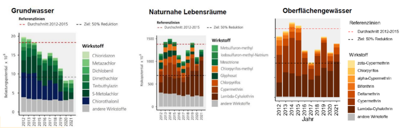 In Bezug auf naturnahe Lebensräume und Oberflächengewässer schwankt das Risiko von Jahr zu Jahr. Es wird aus den Verkaufsmengen von PSM und wirkstoffspezifischen Werten berechnet, Massnahmen wie gesicherte Waschplätze oder Pufferstreifen fliessen mit ein. «In diesem Bereich gibt es nur noch einen problematischen Wirkstoff», so Pierre-Yves Perrin, «nämlich Lambda-Cyhalothrin.» Dabei handle es sich um ein Raps-Insektizid. Es gilt also, bei diesem Wirkstoff anzusetzen, wobei Perrin vom einfachen Streichen abrät: «Wir dürfen nichts überstürzen, sonst wird die Produktion massiv beeinträchtigt. Mengen und Qualität müssen gesichert werden.» Vielmehr soll ein weniger problematischer Wirkstoff Lambda-Cyhalothrin ersetzen, wofür Forschung und Zulassung gefragt sind. So könnten die PSM-Risikoreduktionsziele im Rahmen des Absenkpfads bis 2027 erreicht werden, gibt sich Perrin zuversichtlich.