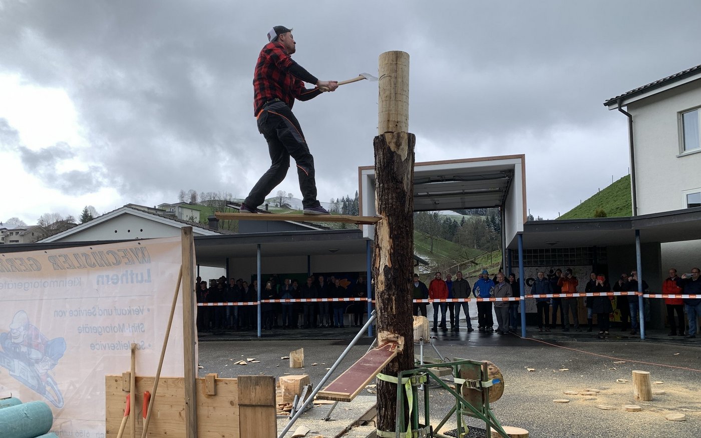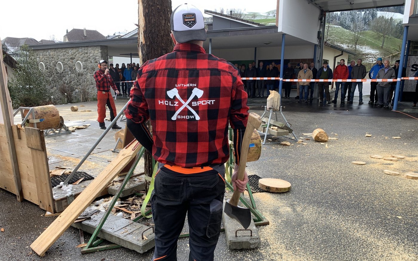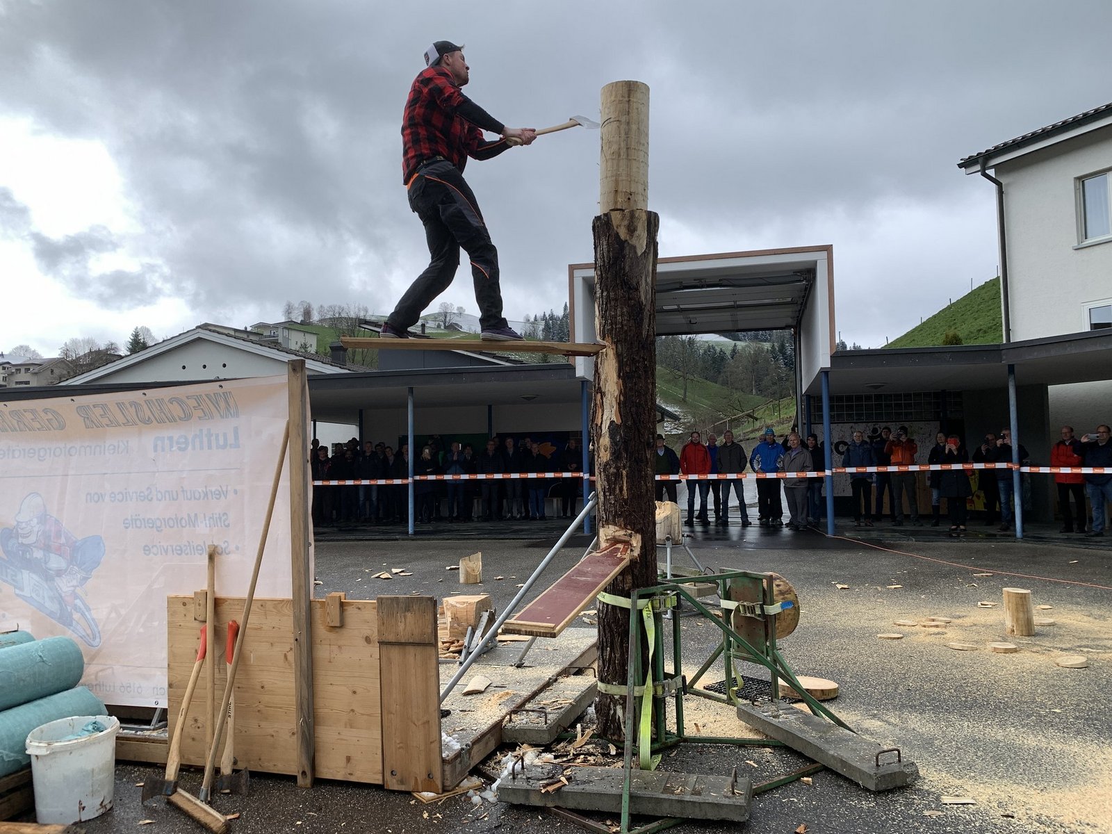 Im Anschluss an die Generalversammlung präsentierte das Team von Timbersport Luthern eine spektakuläre Show mit Axt und Motorsägen. Mit dabei war auch der Schweizer Meister, Severin Bühler.