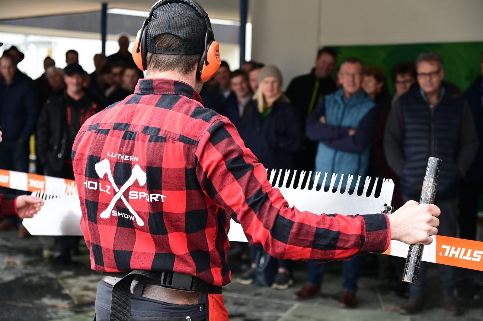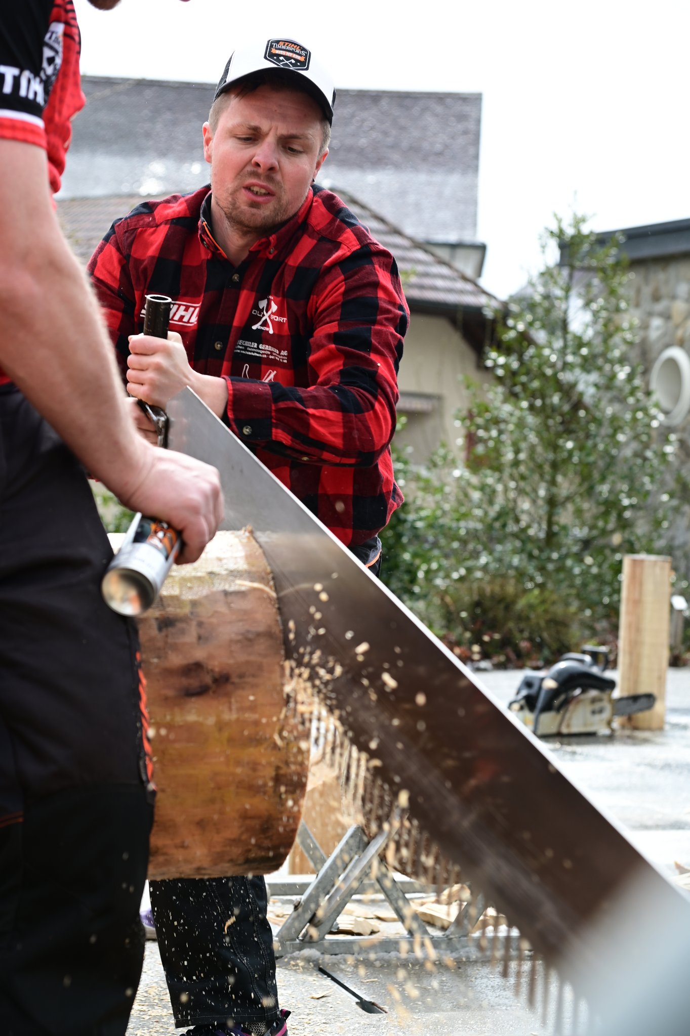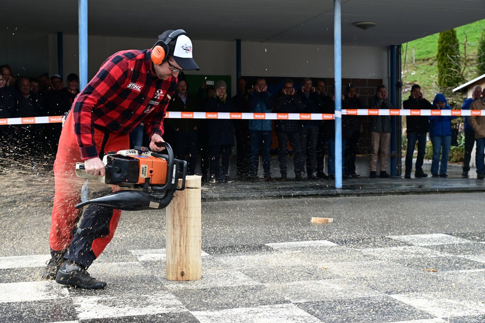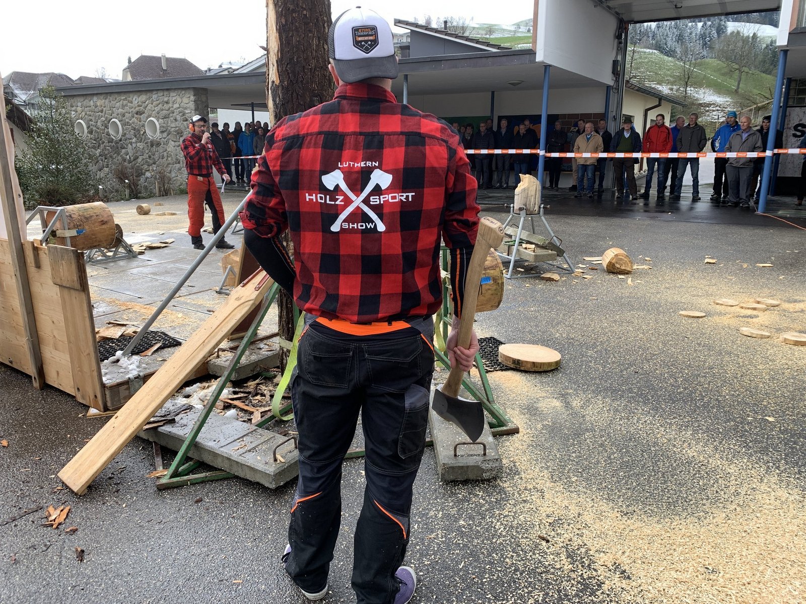 Im Anschluss an die Generalversammlung präsentierte das Team von Timbersport Luthern eine spektakuläre Show mit Axt und Motorsägen. Mit dabei war auch der Schweizer Meister, Severin Bühler.