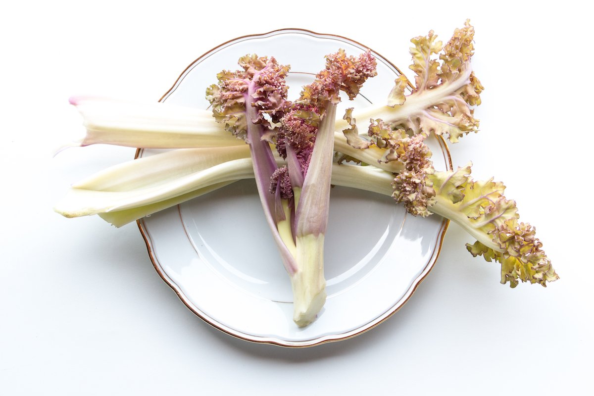 Im ersten Jahr muss man ihm noch das Unkraut vom Hals halten, später ist das nicht mehr nötig. Unter den grossen, welligen Blättern ist für das Unkraut kein Durchkommen. Im frühen Frühjahr, sobald die ersten Gänseblümchen blühen, fängt man mit dem Bleichen an. Dazu stülpt man einen grossen Topf, einen dunklen Kessel oder eine schwarze Mulchfolie über den Wurzelansatz.