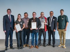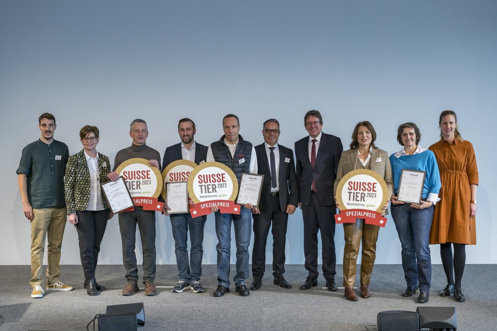 Bereits die Eröffnung der Suisse Tier 2023 war für die Verantwortlichen eine runde Angelegenheit. Nach Geleitworten von Messebeirats-Präsident Meinrad Pfister tauschte sich Markus Höltschi, Prorektor des BBZN Hohenrain, mit den Landwirten Thomas und Marc Grüter vom Sonnhaldenhof in St. Urban LU zum Messe-Thema Effizienz aus. Im Anschluss verlieh die Schweizer Agrarmedien AG, zu der die BauernZeitung und das Fachmagazin «die grüne» gehören, drei Spezialpreise für herausragende gewerbliche Neuheiten und zeichnete drei findige bäuerliche Tüftler für ihre Innovationen aus.
