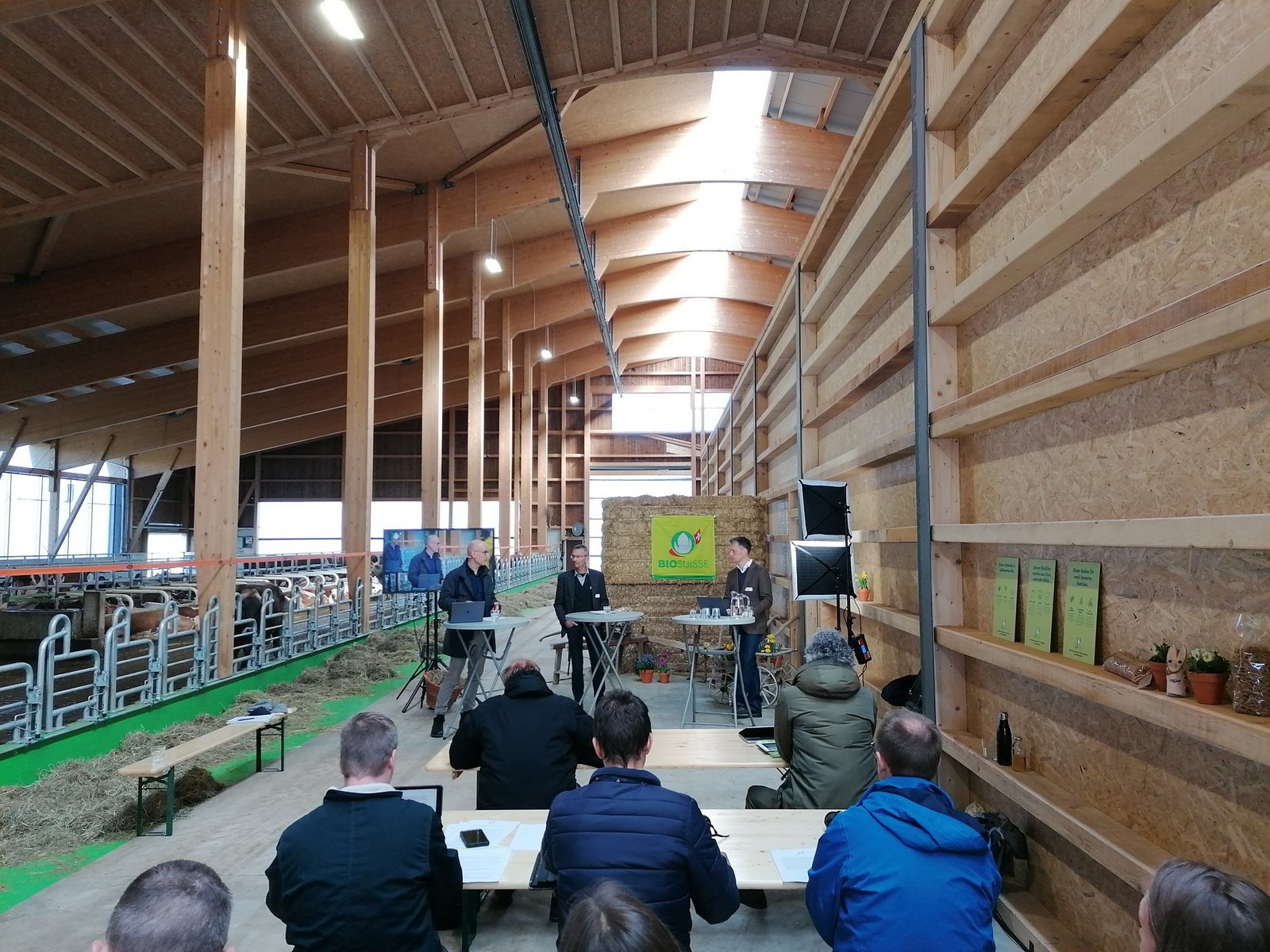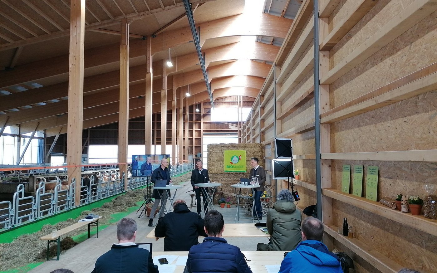 Auf dem Betrieb «Fäschtus Biohof», wo die Medienkonferenz stattfand, wird mit 100 Kühen Milch für Greyerzer-Käse produziert. Der Betrieb von Adrian und Andrea Vonlanthen ist wohl eine Ausnahme, denn Guido Flammer, Präsident Bio Freiburg, erklärte am Anfang des Anlasses, dass im Kanton am Röschtigraben Bio-Milchviehbetriebe fehlen würden, da viele Milchproduzenten an Gruyère liefern. Betriebsleiter Adrian Vonlanthen blieb auch nach der Umstellung auf Bio Gruyère-Lieferant. «Dadurch, dass wir die Milch zweimal täglich abliefern, muss sie nicht gekühlt werden und wir bringen damit einen bisschen besseren Milchpreis hin,» sagt er.