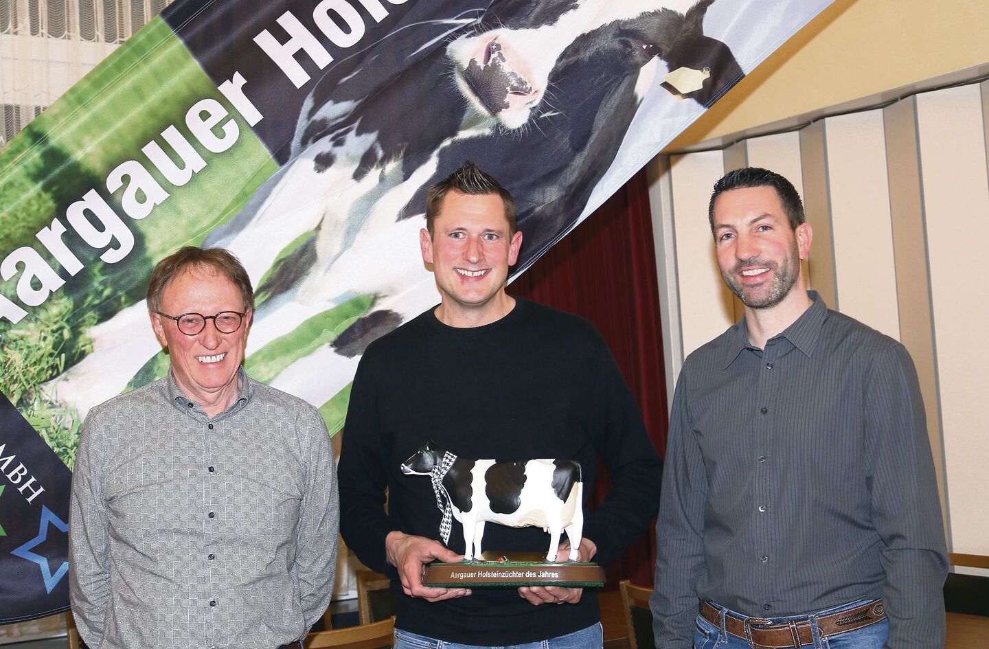 Milan Schenkel aus Bergdietikon wurde an der DV zum Aargauer Holsteinzüchters des Jahres gekürt. In die Bewertung fliessen acht Kriterien aus den Bereichen Milchleistung und -qualität, Exterieur sowie Zuchtwerte ein. Faneur Flora, die Aargauer Kuh mit der höchsten Lebensleistung (146'870 kg) steht im Stall von Andreas Kaufmann, Sins. Mit 3,82 % Fett und 3,62 % Eiweiss hatte Glen Mega von Heinz Meier, Kyburg, bei den Inhaltsstoffen die Nase vorn. Mit ihrer Lebensleistung von 140'585 kg Milch kommt sie auf eindrückliche 10'461 kg Fett und Eiweiss.